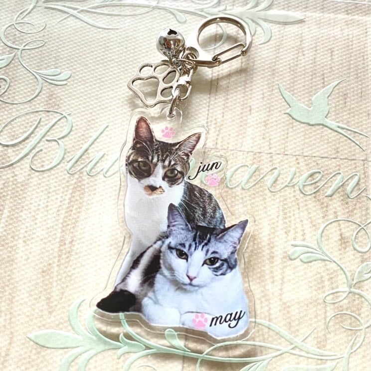 ジュンちゃん、メイちゃんのオリジナルストラップは、日向ぼっこアクリルキーホルダーは