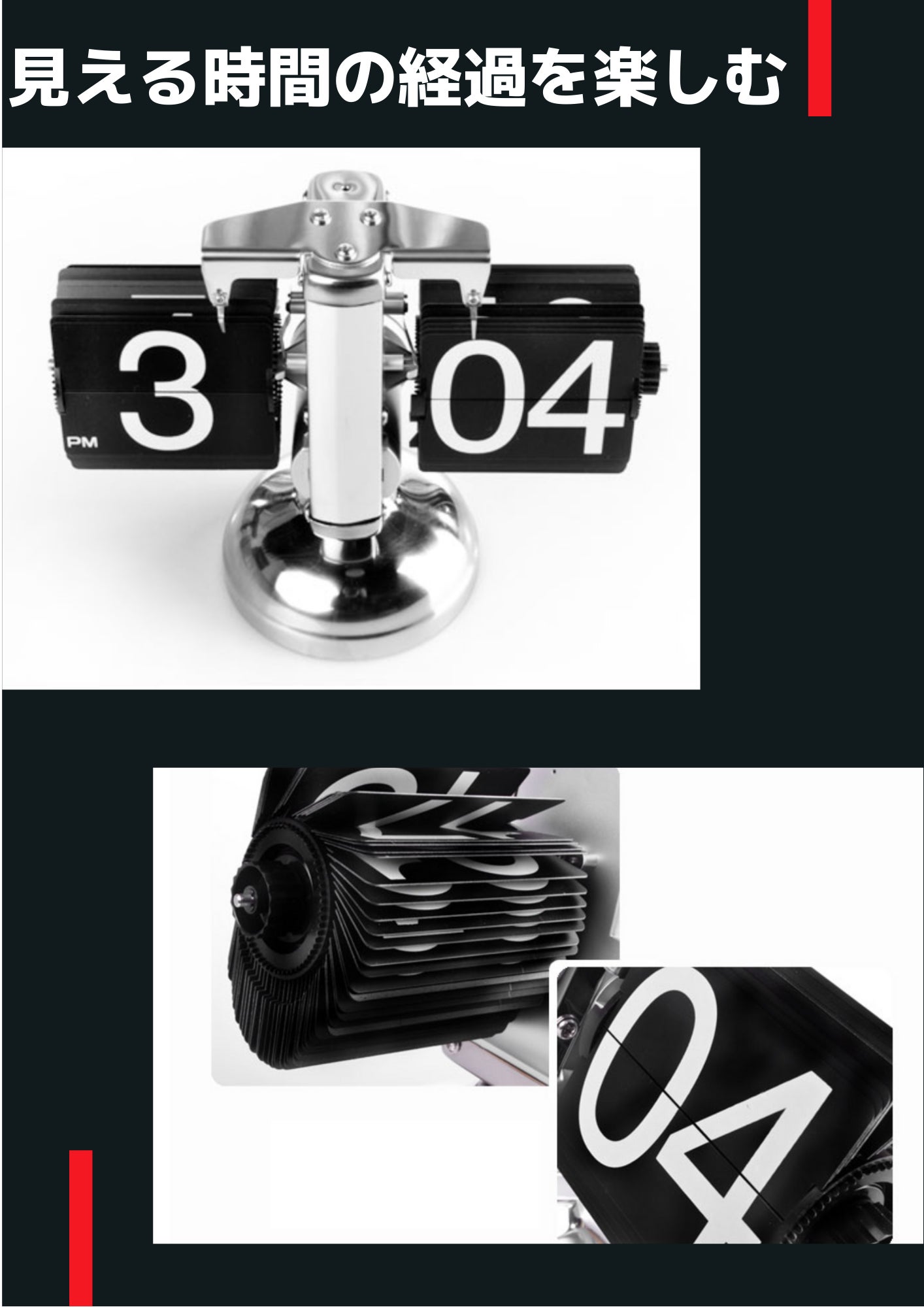 ミニマリストのデザインスタイルとメタリックな質感のレトロなスケール型のフリップクロックを作成しました。シンプルなページめくりの楽しさと独自性は、個人のコレクションだけでなく、新世代の技術的な装飾品もにもなります。