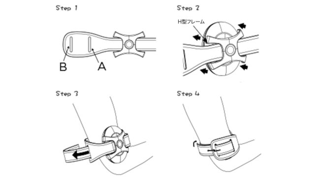 4.アームバンドをを軽く締めます(緩すぎたり、きつすぎたりしないでください)。