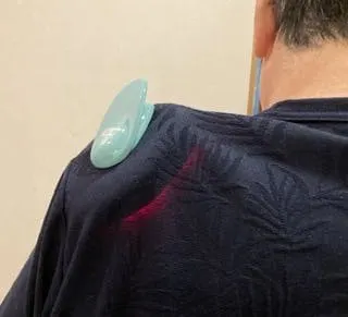 実際に使用していただくと感じて頂けるのですが、近赤外線を照射する肌に接する面が微妙に凹面になっており、どこの部位にも心地よくフィットし筋肉を温めてくれます。