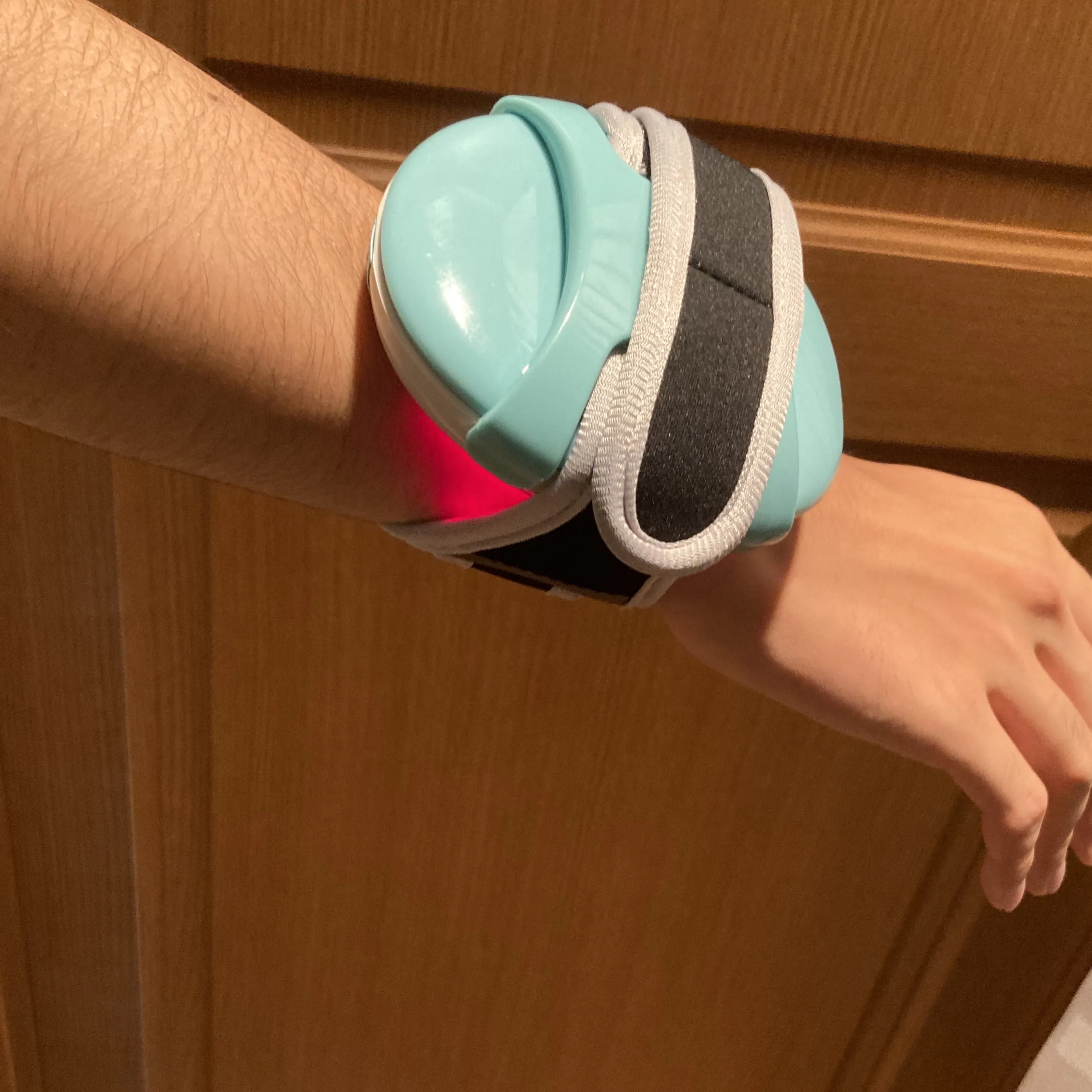 6.マジックテープを締めて、アームバンドを固定します。