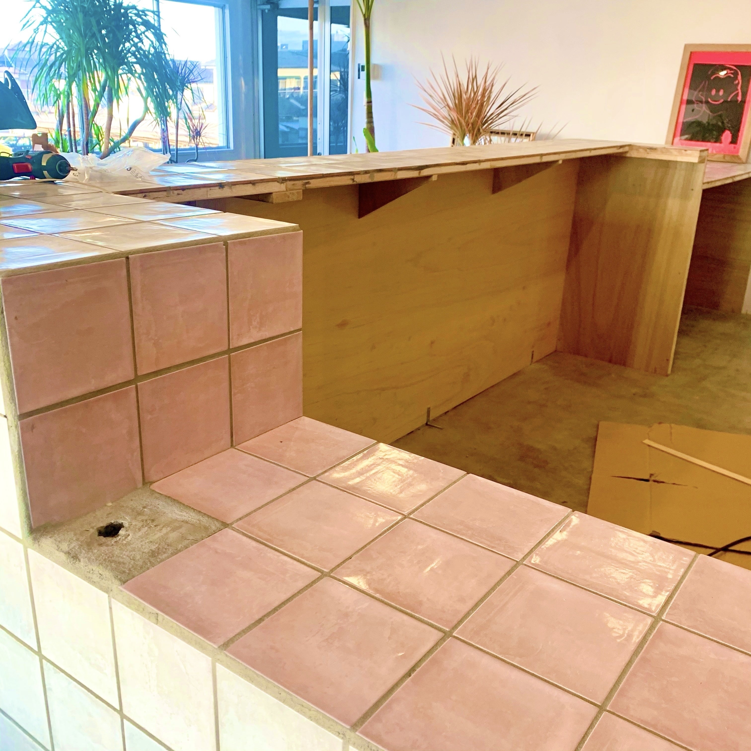 高さはこのくらいかな?これだと低いかな?どんなタイルにするか?とみんなで考えながら作ったカウンター。
