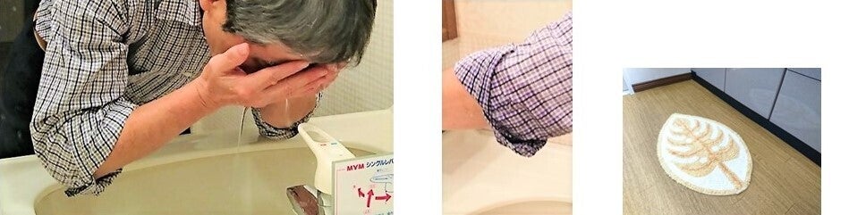袖口が濡れる悩みは毎度のことと諦めていましたが、水滴が床にまで落ちていたことに気付いていませんでした。呼ばれて行ってみると、マットは濡れて床は光っていました。