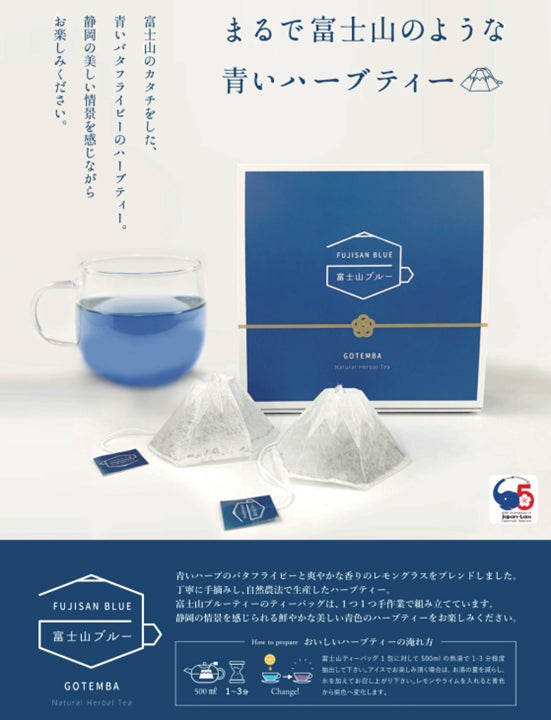 ツジコー株式会社さんのラオス産バタフライピーの乾燥花の刻みを静岡県御殿場市の就労移行支援授業所の方たちが富士山のティーバッグに詰めて『富士山ブルーティー』として販売しています。