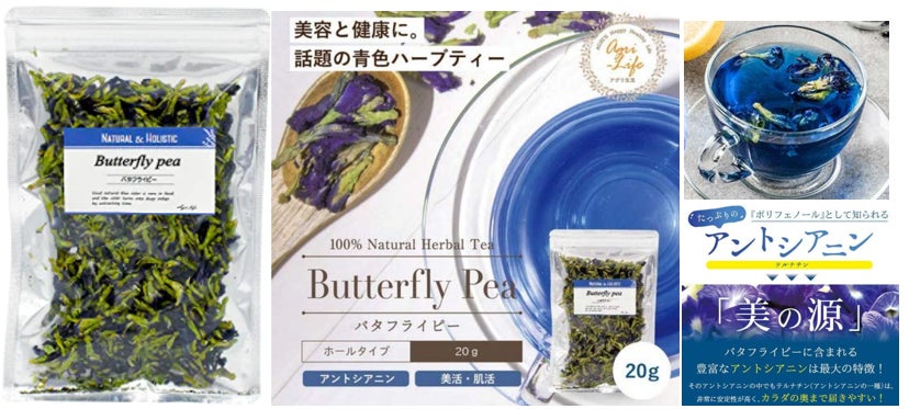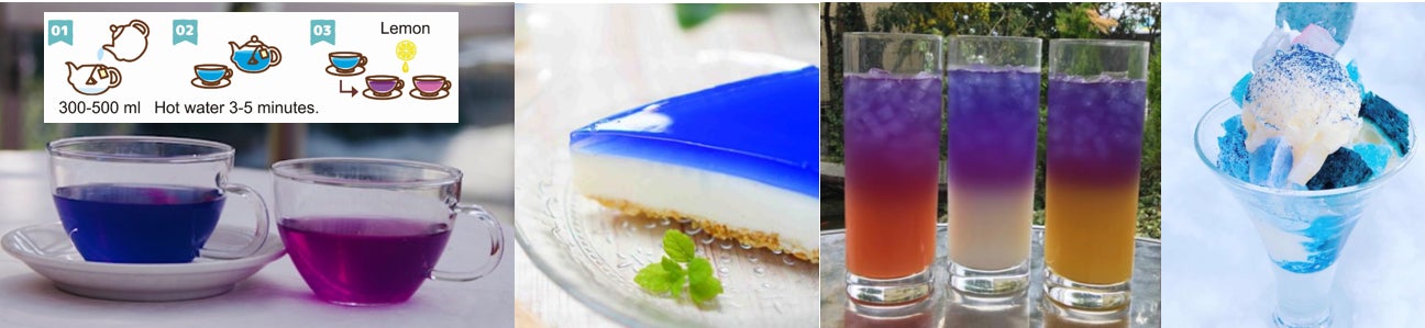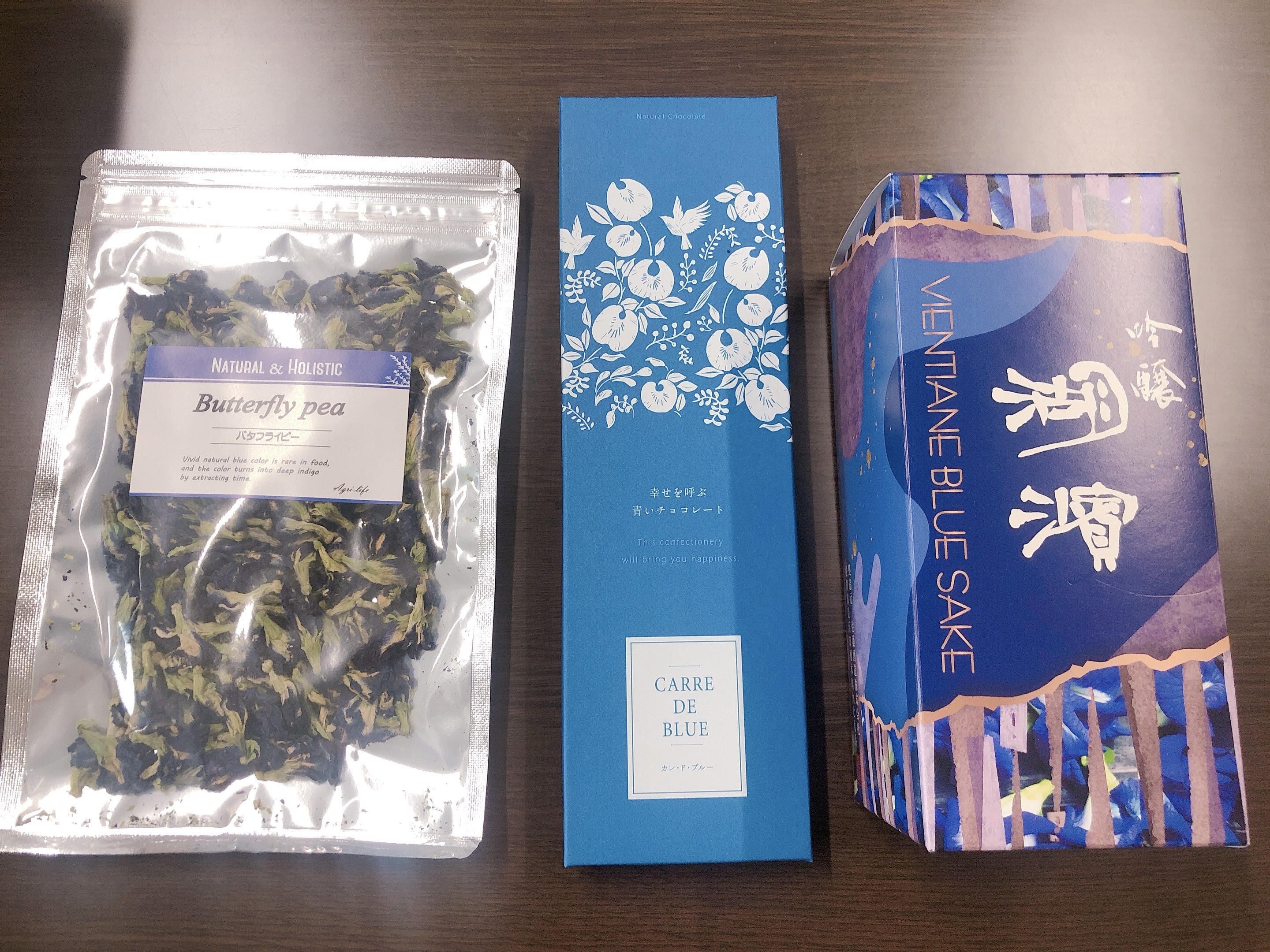 今回一緒にプロジェクトを立ち上げたツジコー株式会社さんは、ラオスでバタフライピーを完全無農薬・無化学肥料で栽培し、バタフライピーの乾燥花をハーブティーの原料として刻み、また乾燥花を殺菌されたパウダーに加工し、日本へ輸出されています。バタフライピーは、青いハーブティー、チーズケーキ、パフェ、シフォンケーキなど青いナチュラル着色料として利用されつつあります。また、ラオス産のバタフライピーを用いた「幸せを呼ぶ青いチョコレート、青いラングドシャ、青いラテ」は、ツジコー株式会社さんの子会社が「アグリ生活」の屋号で、楽天、アマゾン、ヤフー、Qoo10などにて、販売を進められています。