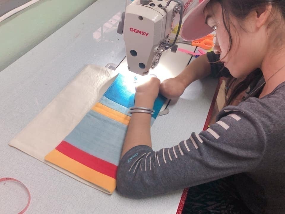 幼少期のけがで指を失ったメンバーのミシン 作業など