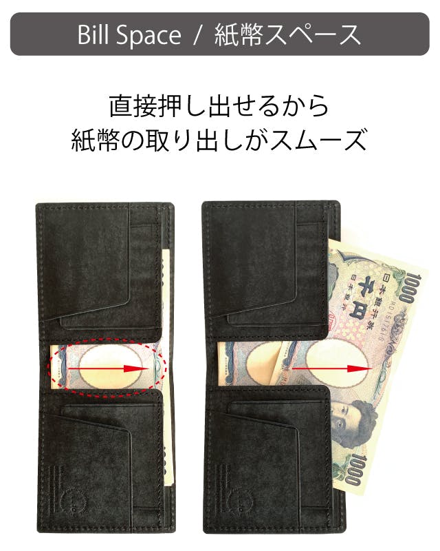 中央部分があいているので、紙幣の出し入れがスムーズ