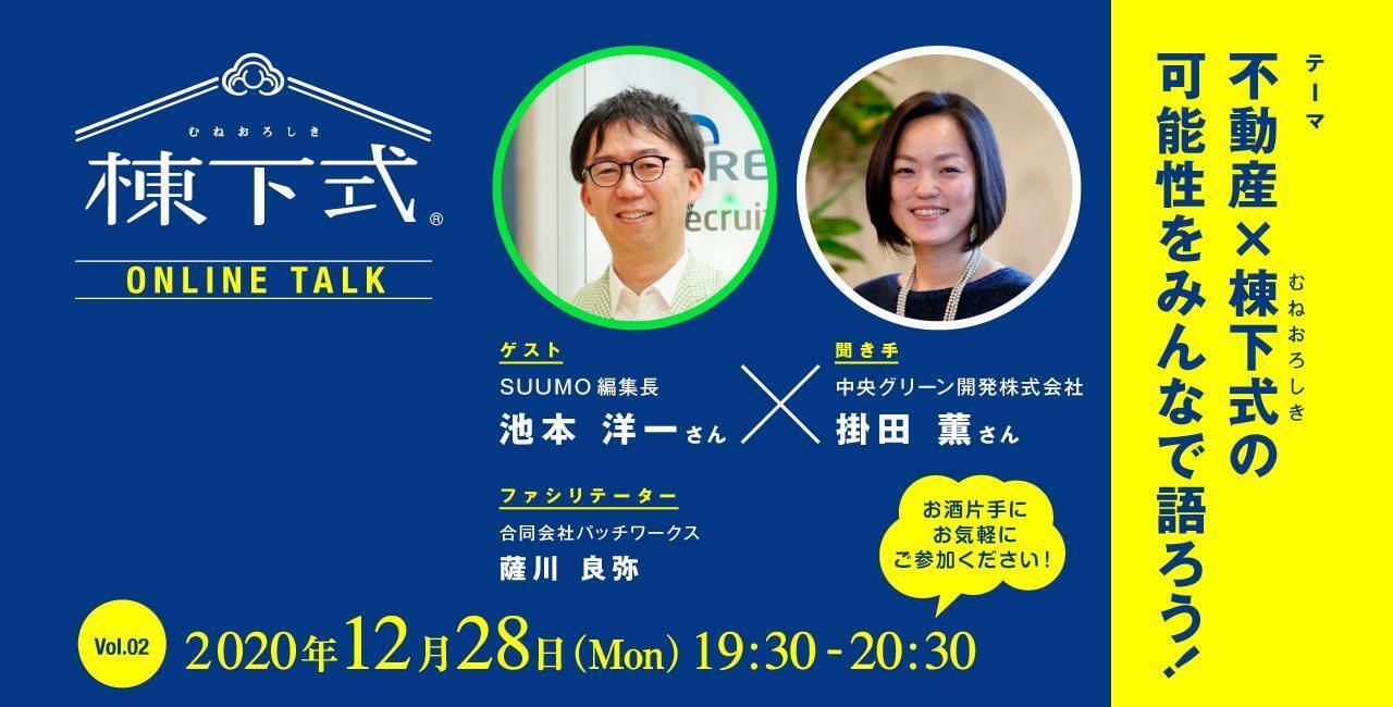 棟下式オンライントークイベントを開催します!ゲストにはSUUMO編集長の池本さんをお迎えして「不動産×棟下式の可能性をみんなで語ろう!」をテーマにお話しします。参加は無料です。 「不動産×棟下式」の可能性をみんなで語りあいたいと思います。こんなアイデアあるよ!こんなことできない?実家をどうしたらいいか相談したい。うちの県で広める側で参加したい。などなど・・・棟下式に共感いただける方なら、誰でもご参加いただけます。この取り組みを全国に広めるために、たくさんの方のアイデアを聞かせてもらえたら嬉しいです。ぜひ一緒に考えてもらえたら、広める仲間になってくれたらなおさら嬉しいです。ご興味がある方はお気軽にご参加ください。詳細 : https://www.facebook.com/events/698160287539486/