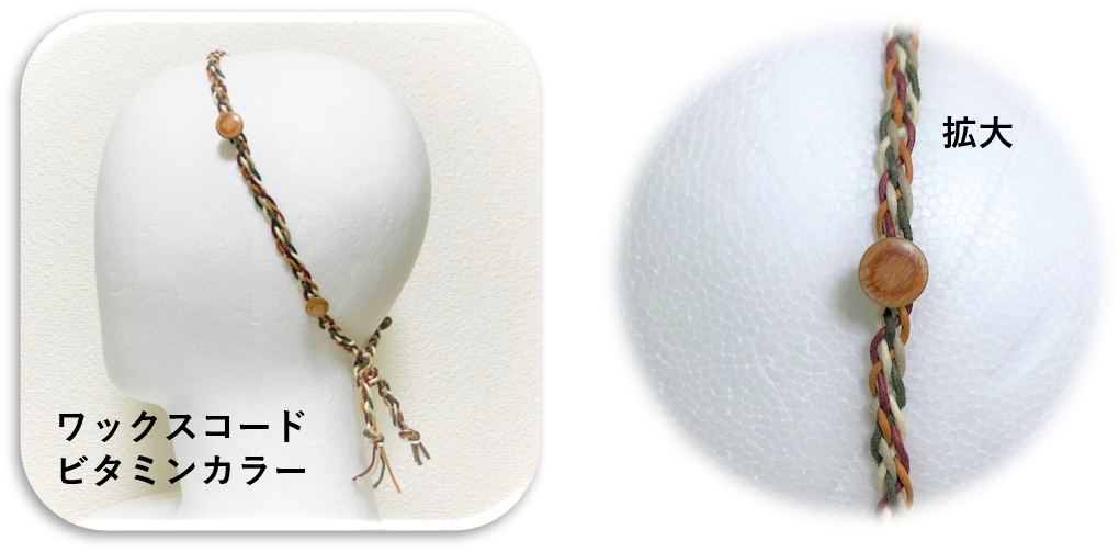 仕様:長さ約70cm 綿ワックスコード、木製ボタン