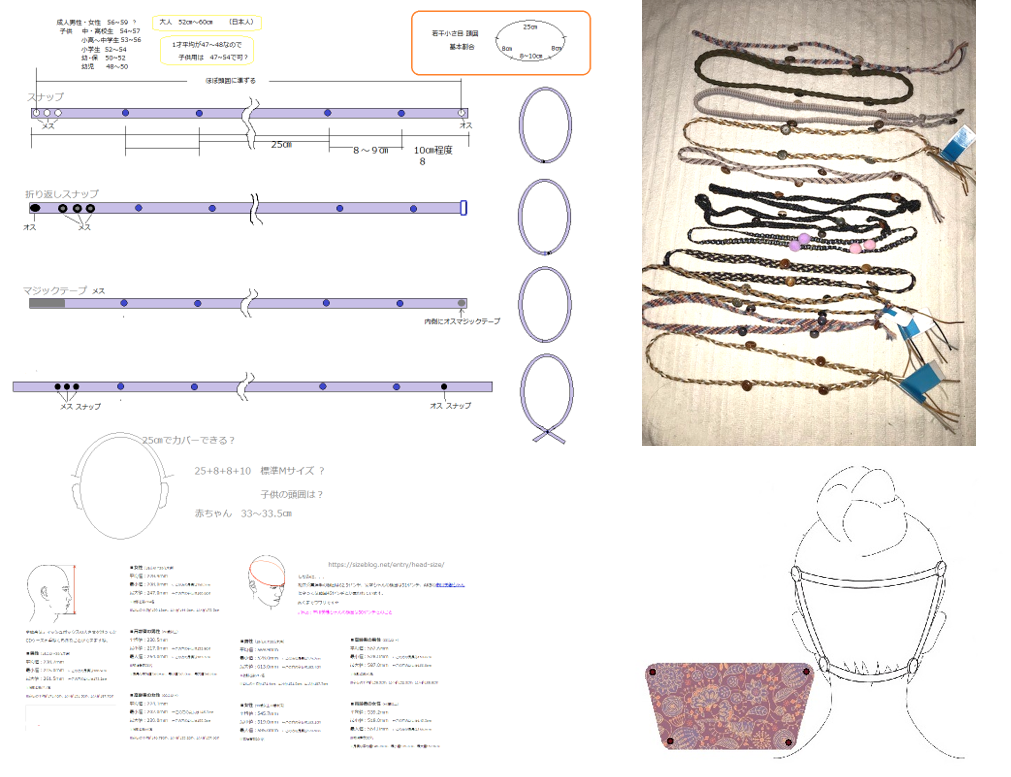 初期のアイデア及び試作品これで「マスクをつけると耳が痛くなる」問題や「マスクがズレてくる」といった問題が無事解決できました。