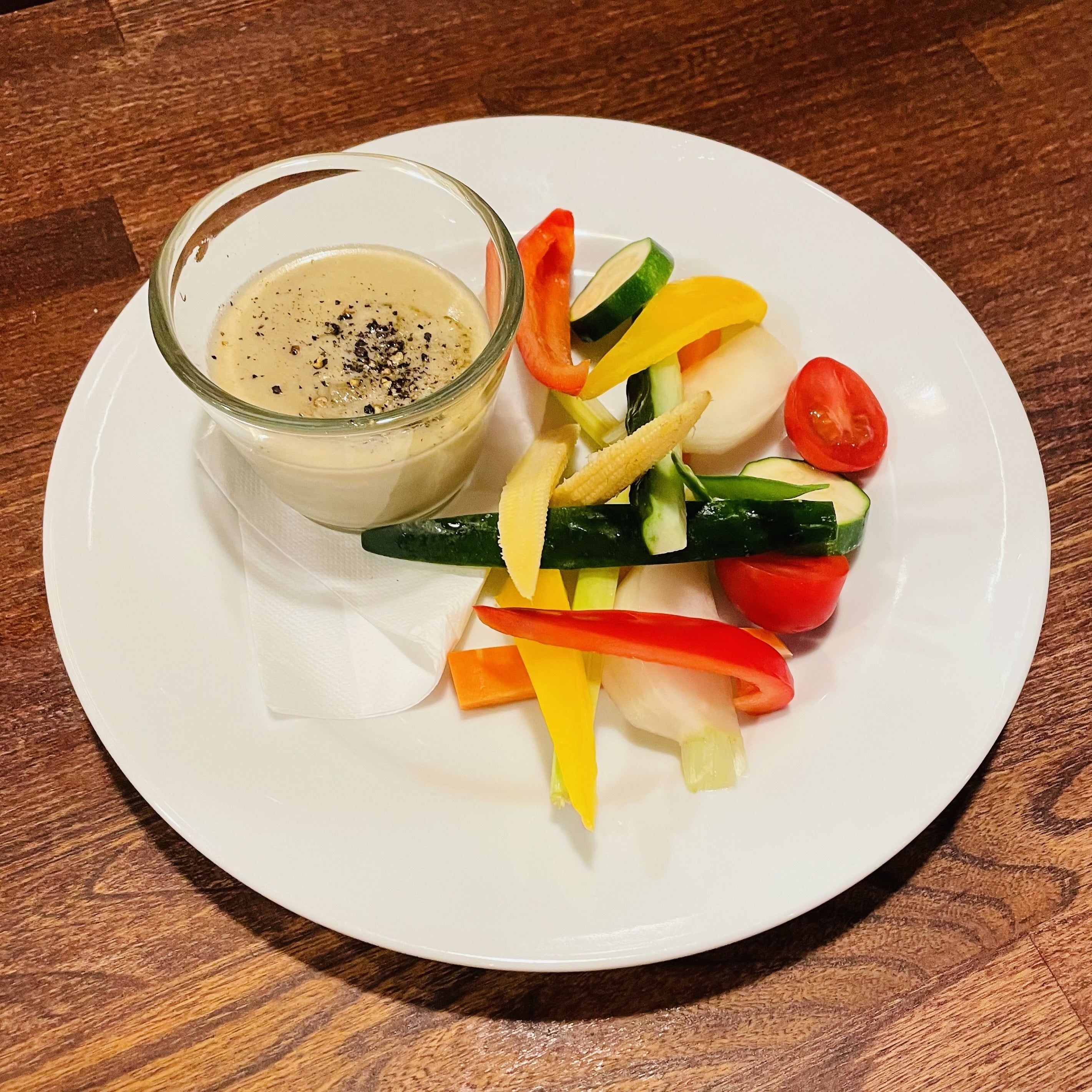 温めたソースで季節の野菜をお楽しみいただけます。