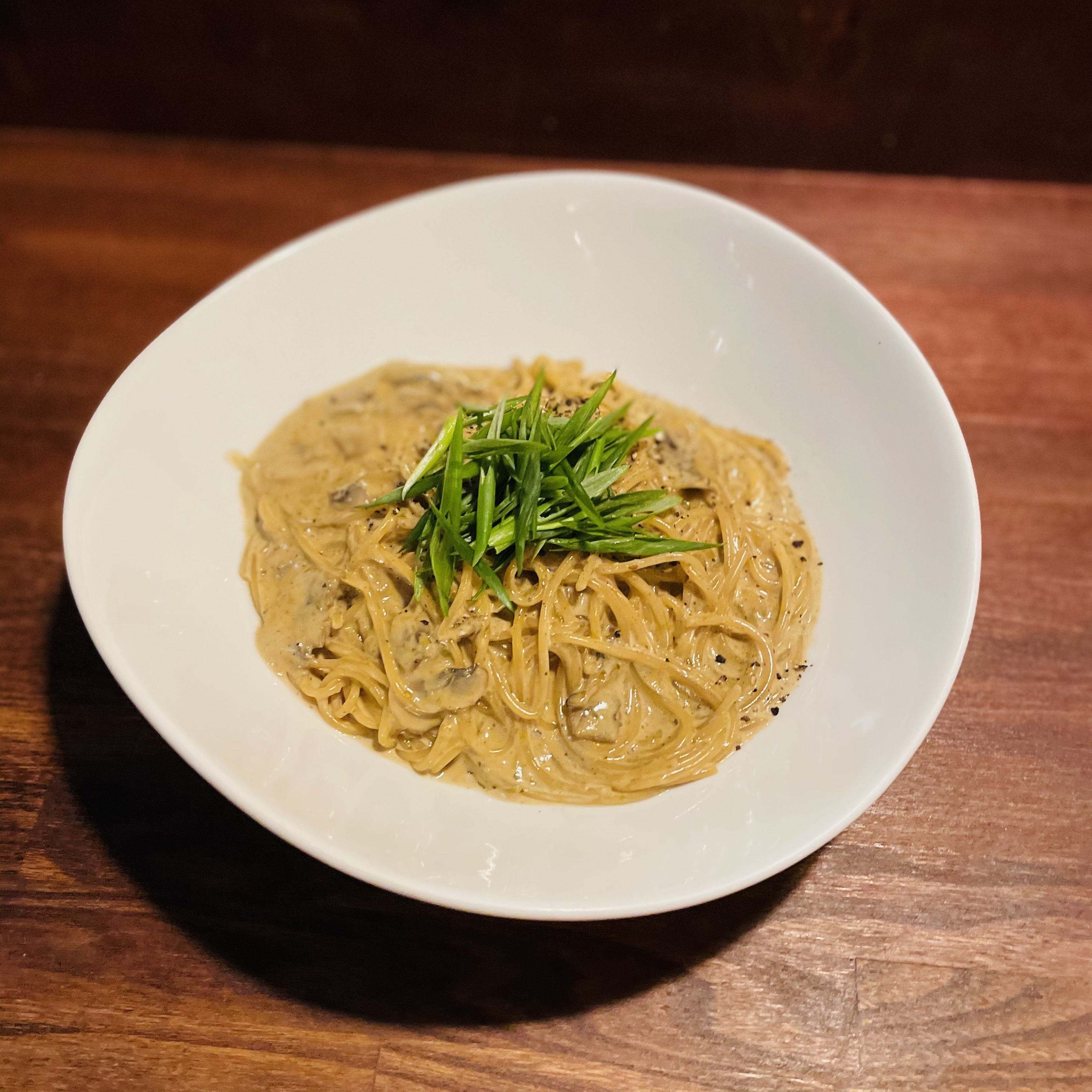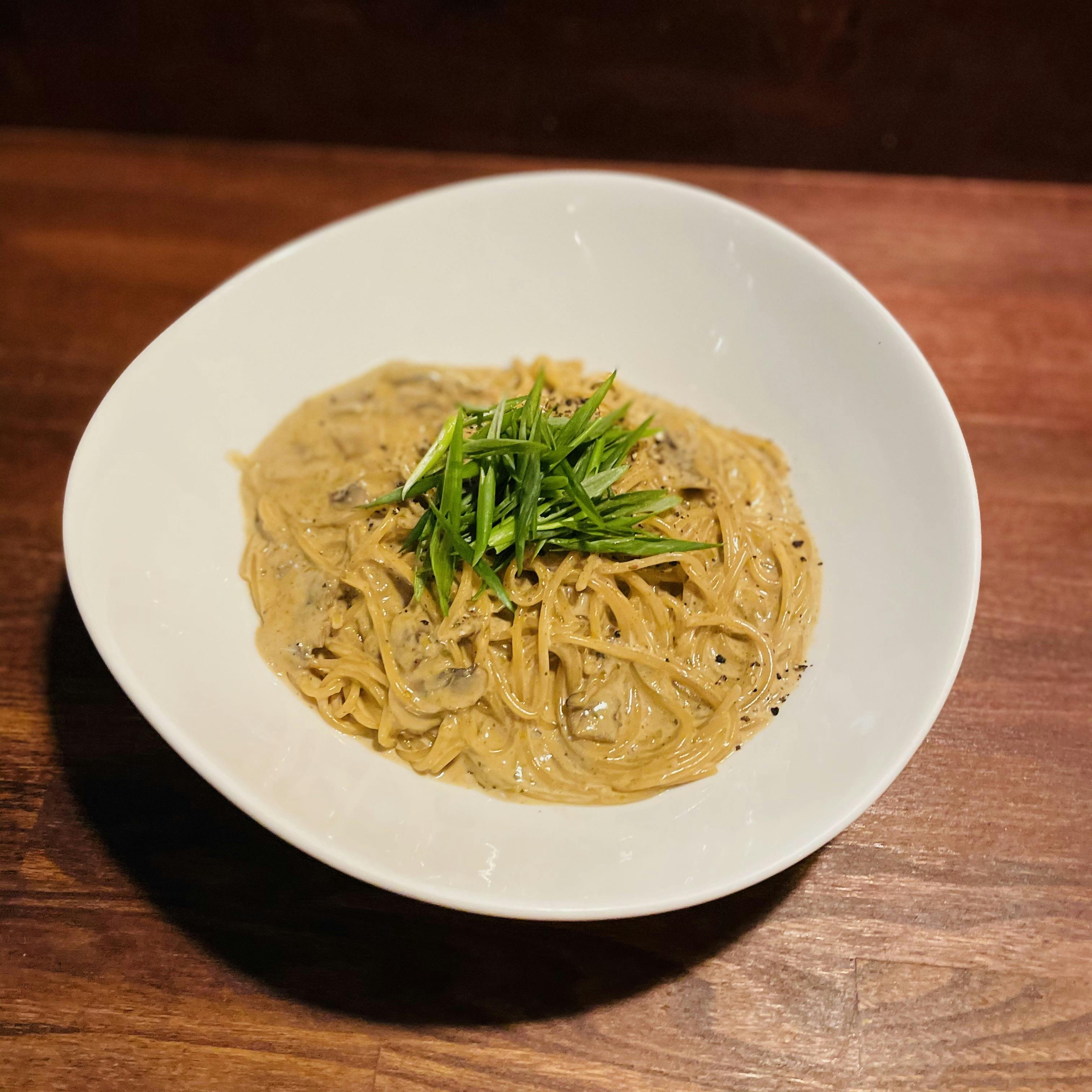 クリームベースながらもほんのり和風な味わいで、スパゲッティはもちろんショートパスタにもよく合います。