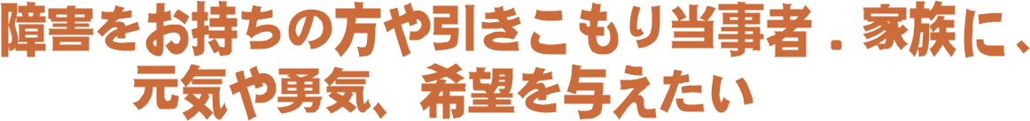 障害をお持ちの方を初め、引きこもり当事者やそのご家族など、様々な事情を抱えながらも一歩を踏み出したいと考えている方。応援してくださる方。わたくし当事者の背中を押していただけたら幸いです。