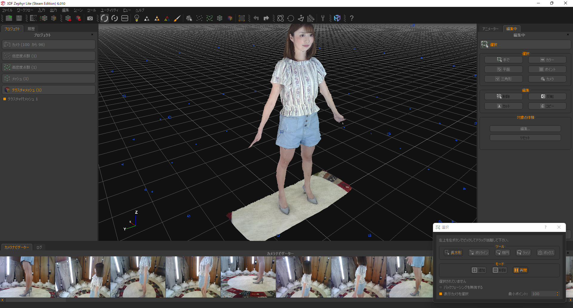 12/9に屯田スタジオでモデルさんを撮影しました。おかげさまで成功しました! 課題はたくさんありますが、第一回目としては上出来でしょう! 簡易的ですが3DCG化できたので、これから数カ月かけて3DCGモデルの修正作業をします。