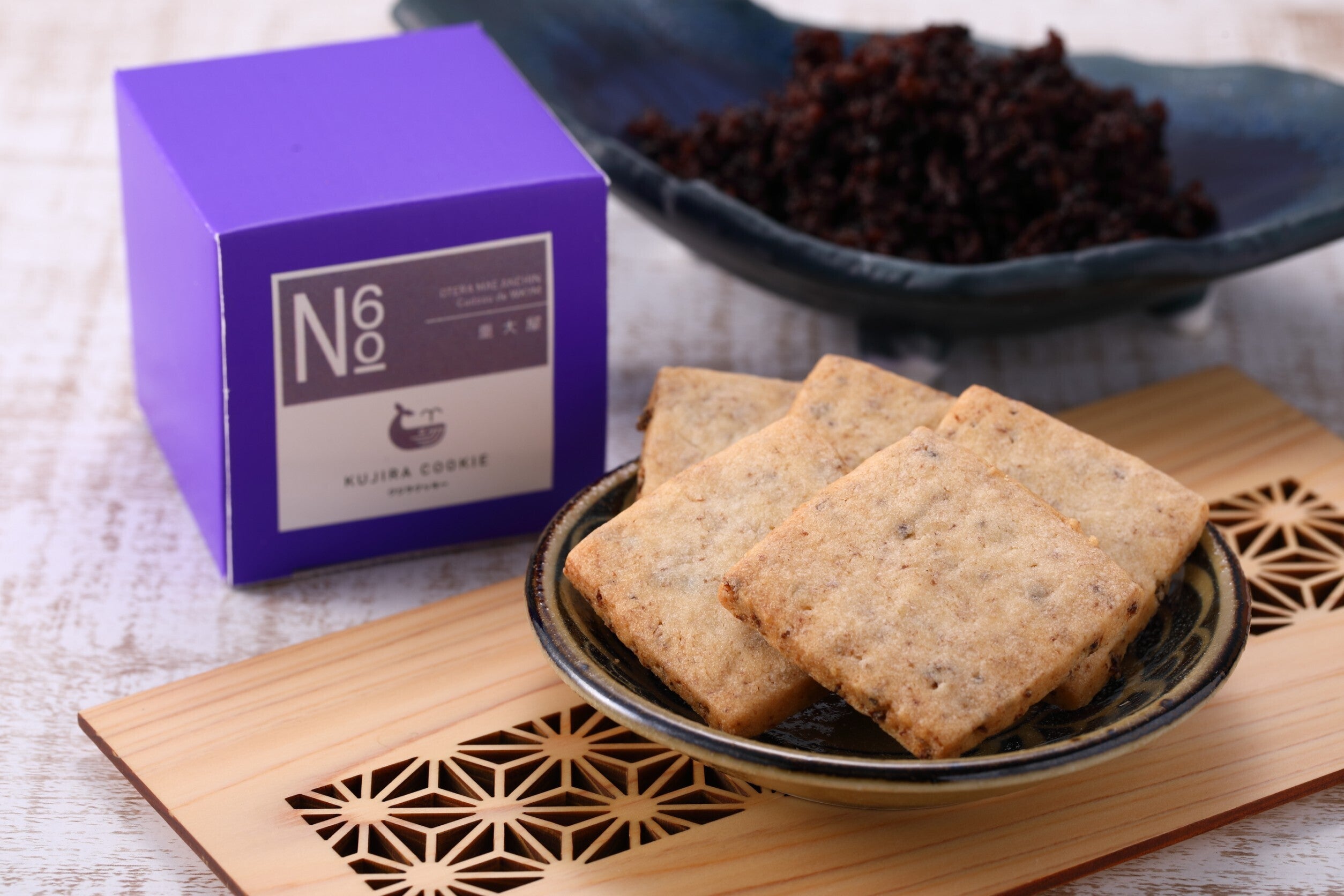 今回のプロジェクト、水産業で今まで考えたこともなかった『お菓子』と言うジャンル!最初は驚いてどのような形になるのか、想像もできなかった。しかし、話を進め開発して行くにつれ、とても面白い商品が出来上がって来た!クジラのミンチを使った、その名も『クジラクッキー』。そのクッキーは、クジラを食べ慣れている私にはあまりわからないが、クジラの感じが良くわかる甘くないクッキーに仕上がっている。おつまみなどにしていただけると良いと思います。クジラをお菓子にすることにより、今まで興味の無かったクジラを食べた事の無い世代の方にも興味を持って頂き、クッキーだけでなくクジラの美味しさに触れていたでけるよう願いを込めて、ご提供致します。