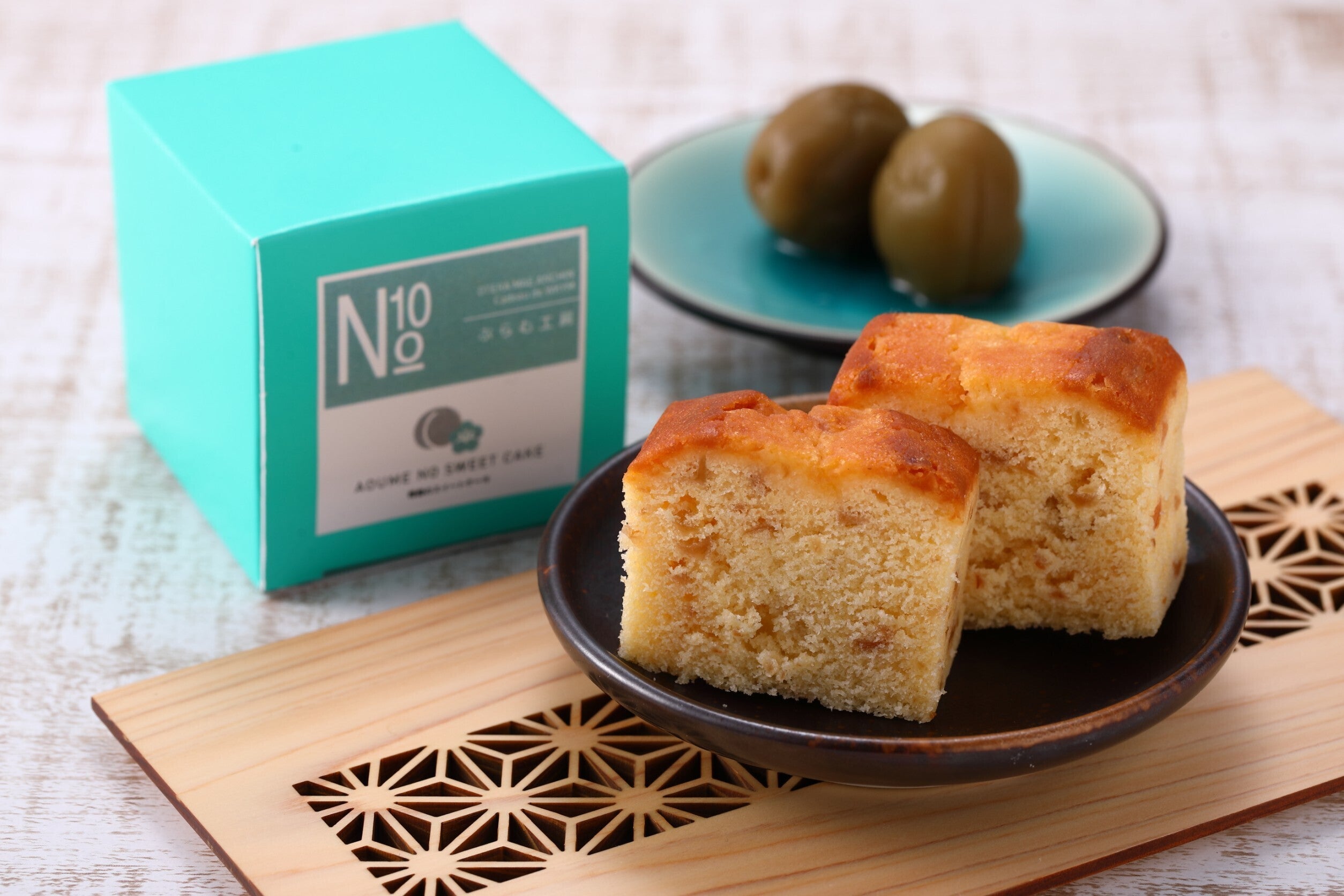 完熟しやすい特性がある紀州南高梅。収穫時期となる6月、梅が青いうちの非常に短い期間に収穫した青梅を砂糖漬けにし、紀州南高梅の芳醇な香りを閉じ込め、シャキッとした食感に仕上げた梅の甘漬けと、梅シロップを生地に混ぜ込んだスイートケーキ。弊社伝統の製法で手間暇かけて作った梅の甘漬けの食感アクセントと、やさしく香る梅風味をお楽しみいただける焼き菓子です。