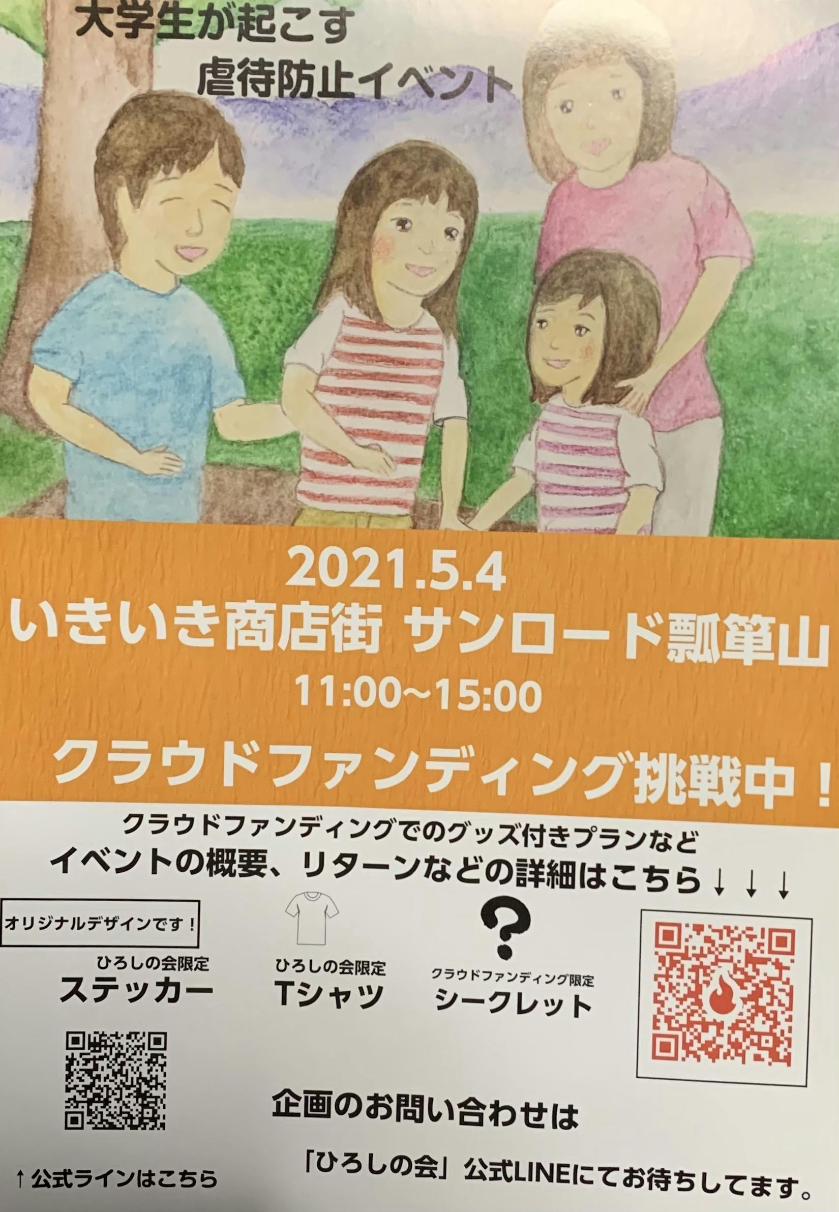 皆さん拡散、ご支援していただきありがとうございます。この度チラシが完成したことを報告させていただきます。こちらのチラシを使い駅で配ったり、店に置かせていただいたりしてこのプロジェクトを多くの人に知ってもらい児童虐待の認知をあげていきたいと思います。コツコツと日々頑張りますのでよろしければこれからも応援していただければ幸いです。