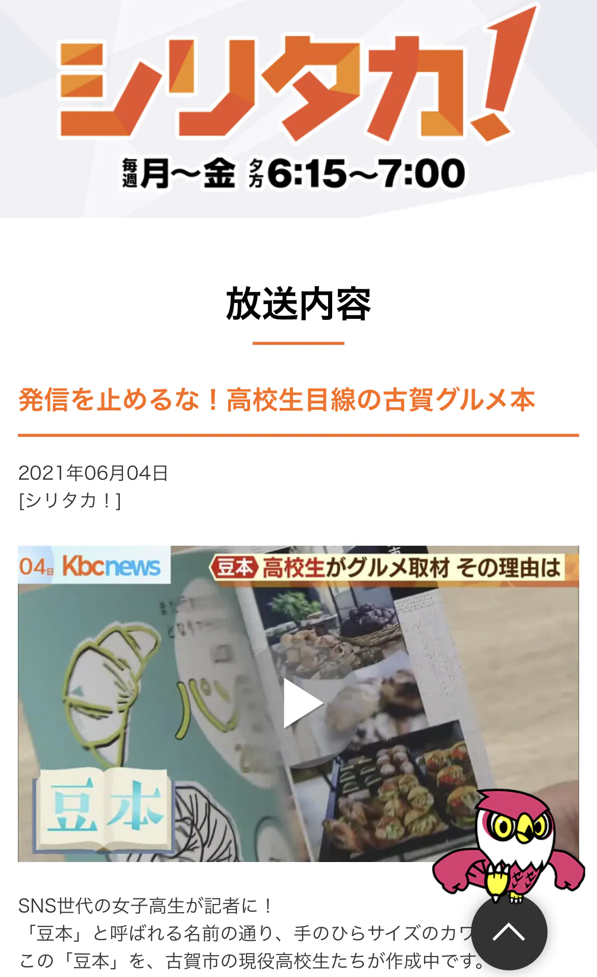 KBC九州朝日放送の人気番組「シリタカ!」です。なんと、ありがたいことに、今なら、KBCのホームページより視聴できます。一定期間だと思いますので、ぜひ見てほしいです。