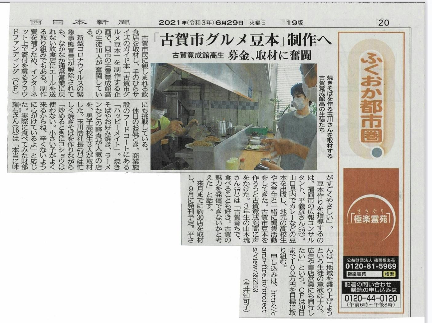 6月29日付西日本新聞の「福岡都市圏」版に本プロジェクトを取り上げてもらいました。福岡県で最も読まれている地元紙。いつもありがとうございます。