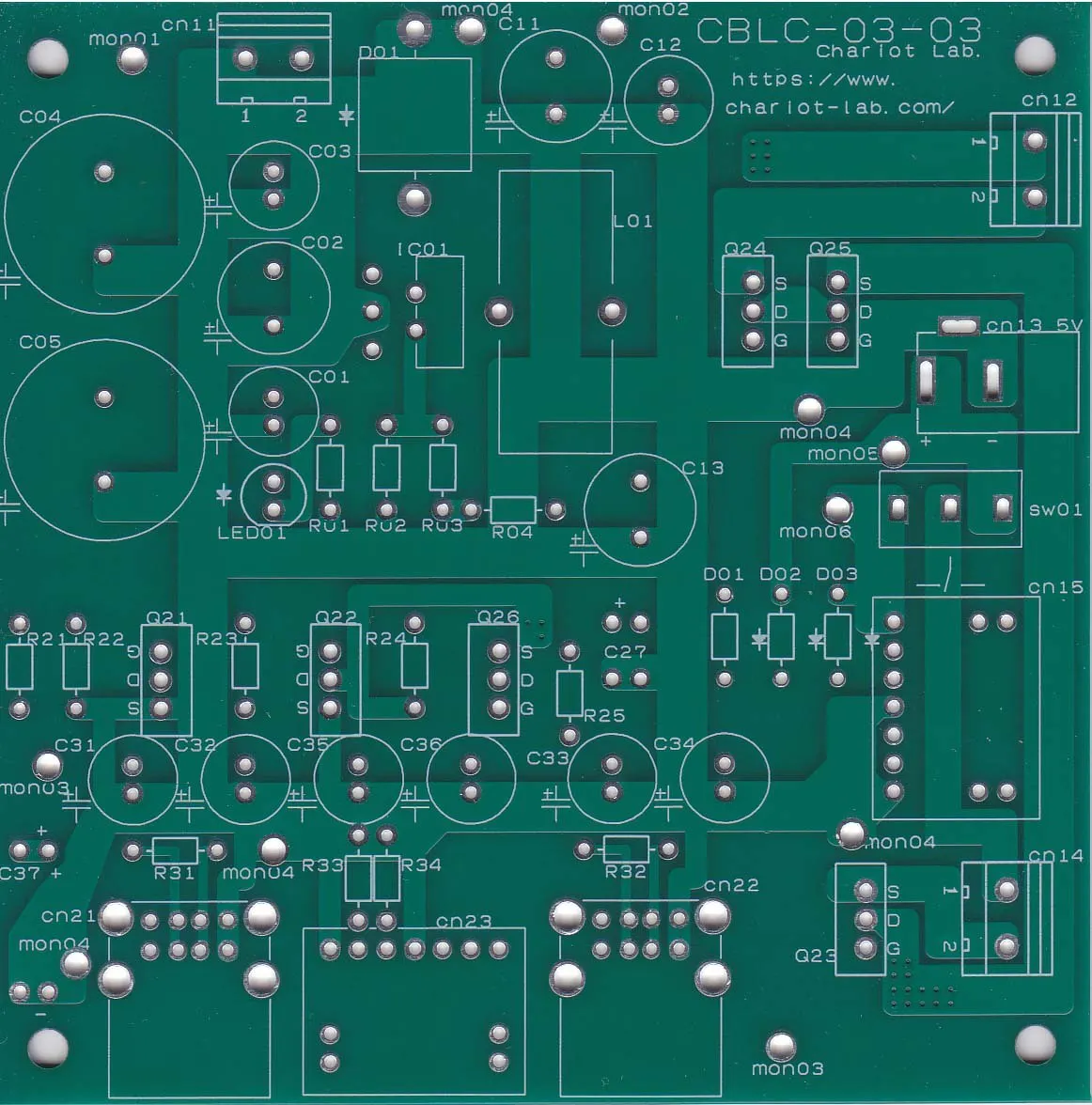 18,000円コース…新プリント基板(型番CBLC-03-03を予定)を10枚お送りします。 型番、「 Chariot Lab.」の屋号名、URL部分のシルク印刷を支援者様の好きな文字列にカスタマイズ可能です。 また、プリント基板の色を選べます。