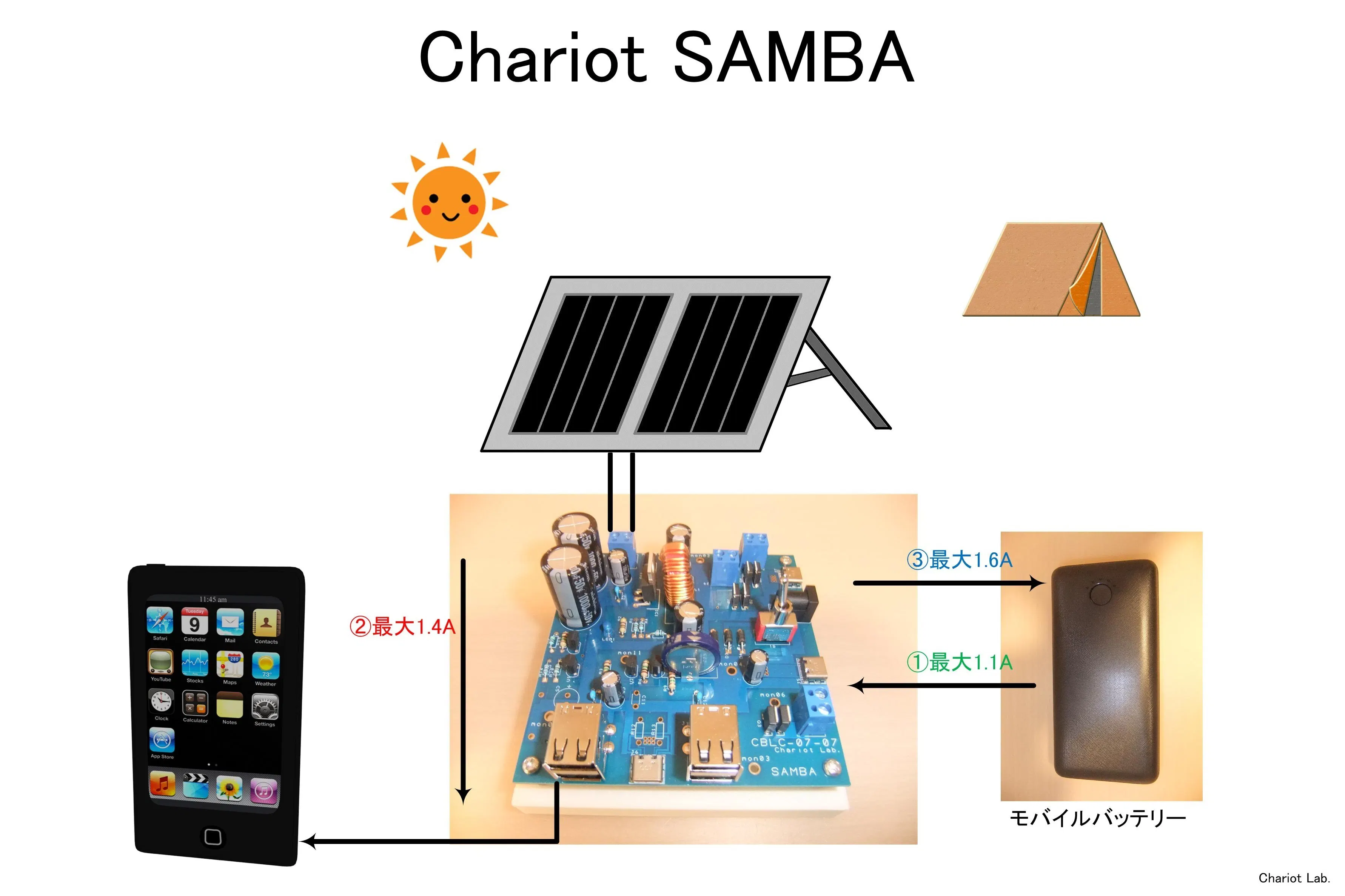 応募特典:現在進行中の「Chariot SAMBA ~モバイルバッテリを用いた独立電源システム~」ご支援時に、