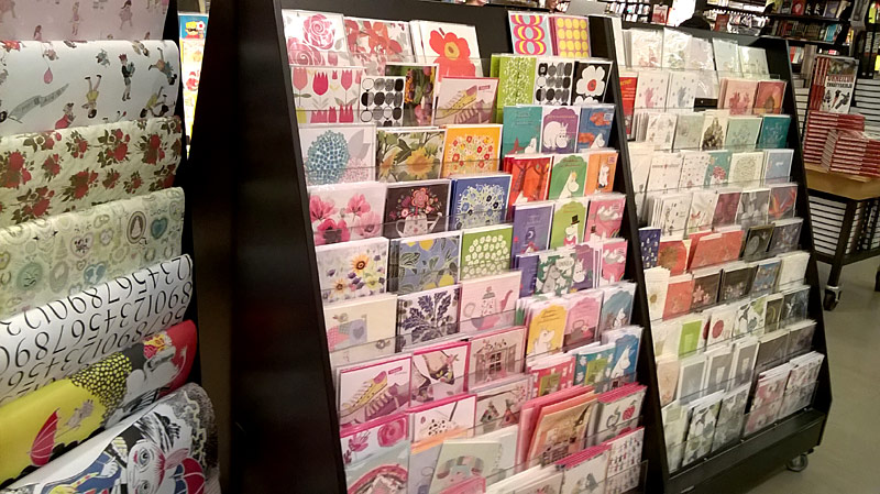 もちろん、カード売り場もチェックします。まだこの時期(10月現在)クリスマスのものは並んでいないので、これらはまだクリスマス仕様ではないのですが、11月に入りましたら、クリスマスカードが売り場を拡大して所せましと並びます。見ているだけで楽しくなってきます。