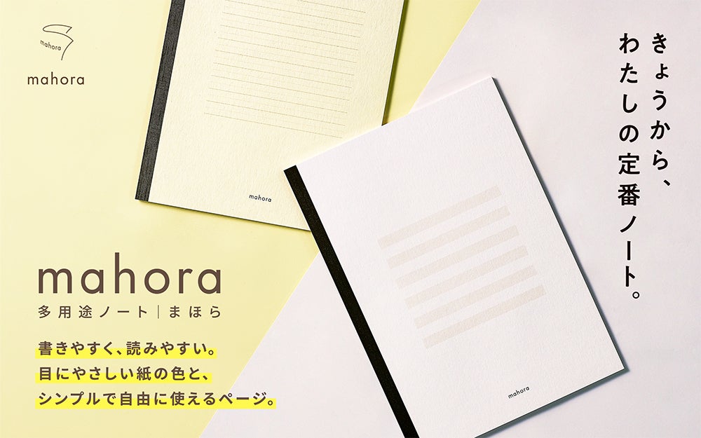 私たちが作るノートが皆様にとって「使いやすいノート」「心地よく使っていただけるノート」であってほしいという想いを込めて『mahora』 と名付けることにしました。