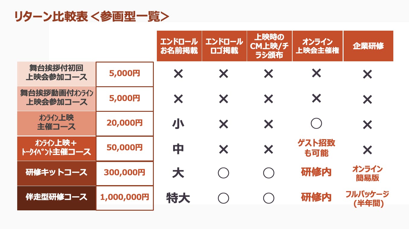 全てのリターンにおいて、本映画(約45分)の視聴が可能となります。