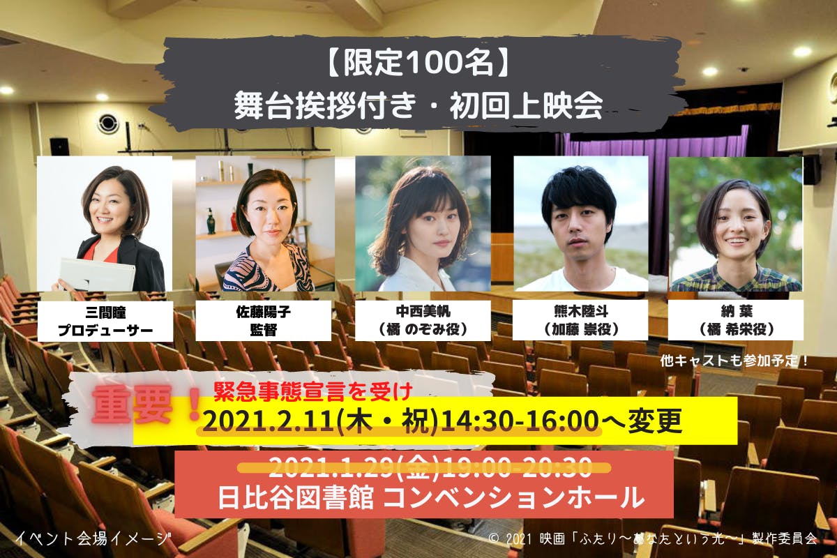 1月29日(金)19:00~開催の舞台挨拶付・初回舞台挨拶のリターンを購入されたご支援者の皆様の中で、