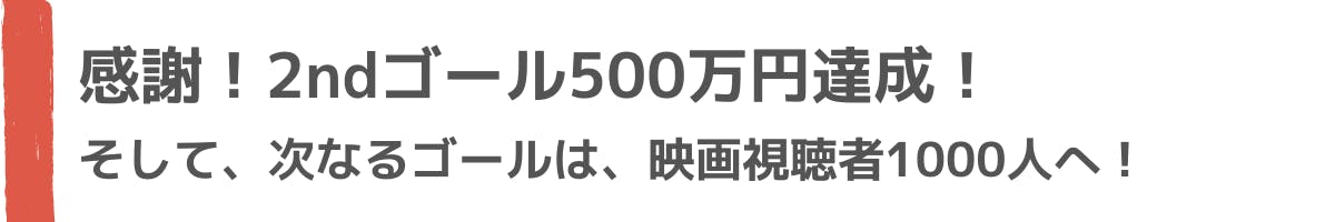 セカンドゴールである制作費の100%の500万円を達成いたしました!!