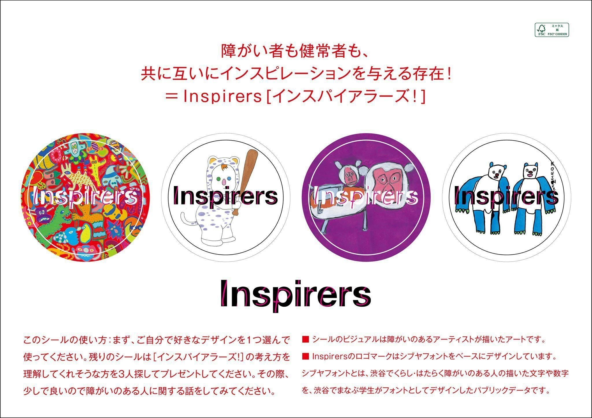 私たちは、本プロジェクトにご支援いただいた方々は、障がい者という人口の1割を占めるマイノリティの存在を排除するのではなく、受け入れ、共に生きる社会創りに一緒に取り組んでいく!という想いに賛同いただける仲間として、Inspirersステッカーを身につけ、その概念を一緒に広めていっていただきたいと考えています。