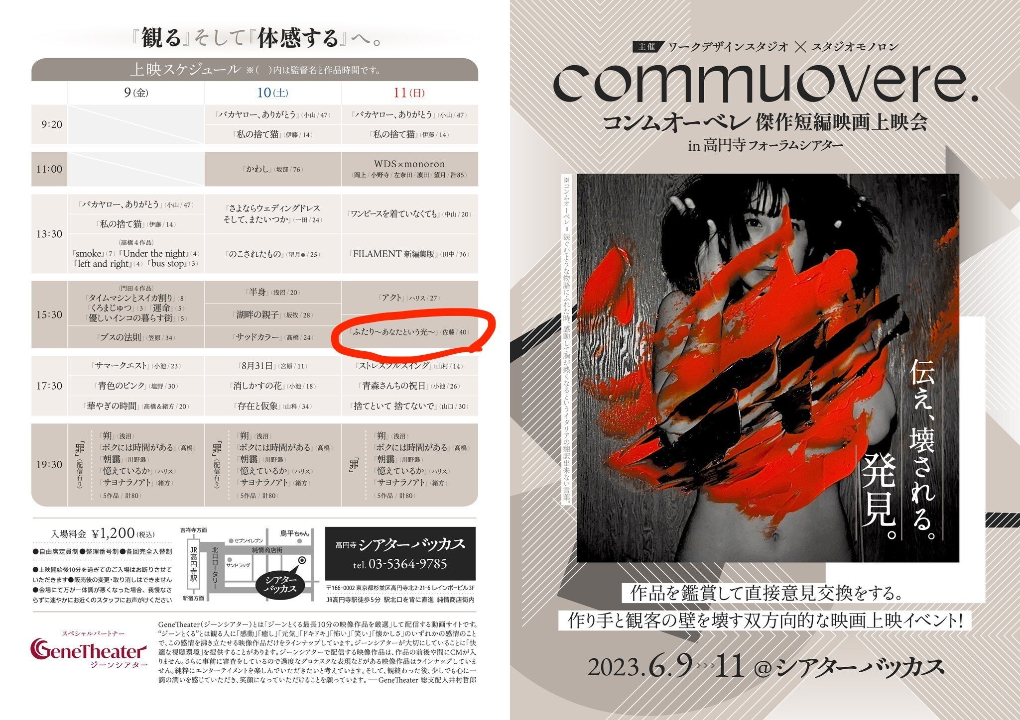 2023/05/27 14:58クラウドファンディングでご支援いただいた皆様へこんにちは!きょうだい映画製作委員会代表の三間です。ご無沙汰しております。久しぶりの活動報告となってしまいましたが、、、いよいよ『ふたり〜あなたという光〜』も映画祭ラッシュが完了しまして、(映画祭には製作年から出せる日数が限りがあります)これまでの自主上映会の開催による映画視聴のスタイルから一般公開への流れへと駒を進めております。すでにvimeoにて24時間500円にて視聴購入権を購入できる形式にはなっておりますが、この度、1日限りの劇場公開が実現することになりました!!「コンムオーベレ」という、新進気鋭27人の映画監督の計40作品を上映するイベント、しかも、映画上映後には監督や俳優が壇上に上がり、観客からの質問や意見をいただき討論する、フォーラムシアターという今までにない新しい映画の楽しみ方を提案するものにて、きょうだい映画『ふたり〜あなたという光〜』が6月11日(日)15:30ーの回にて劇場公開となります。プロデューサーのワタクシ、三間と、佐藤陽子監督が登壇します♪ぜひ、劇場の大きなスクリーンと良い音響にて映画をお楽しみいただけたら嬉しいです!シアターバッカスはミニシアターで、お席は限られております!ご予約はお早めに!!ご予約はこちらからそして!!もう一つ、ご報告がございます!このシアターバッカスでの劇場公開の翌日より、なんと、定額配信サービス「U-NEXT」での配信が決定いたしましました〜〜〜〜〜〜!U-NEXTさんのページより拝借やはり、定額配信サービスで視聴できるとなるとその利用者さんにとっては追加のご負担なく視聴できますしお試し期間内であれば、無料で視聴することも可能となるのでなかなか観ることができない!視聴機会がない!ということで、お待たせしてしまっていた方にはすごく視聴しやすくなると思うのです。こうやって視聴機会が増えることにより、皆様の周りの方にもお勧めしやすくなると思いますので、ぜひ、「今ならここで観れるよ!」とこの映画を改めてご紹介いただいけたらとても嬉しいです^^もちろん、これまで通り、自主上映会という形で映画を広めてくださる方も、ウェルカムでございます!!映画ど素人な私が、こうやって映画をプロデュースし映画祭にも入選し、自主上映会を開いてくださる方々のおかげで映画が広まっていき、さらには1日とはいえ劇場公開、定額配信サービスでの配信開始まで走ってこれたことは、本当にたくさんの方々の応援と支えがあってのことでした。改めて、関わってくださって皆さまに感謝申し上げます!きょうだい映画製作委員会代表三間 瞳 もっと見る
