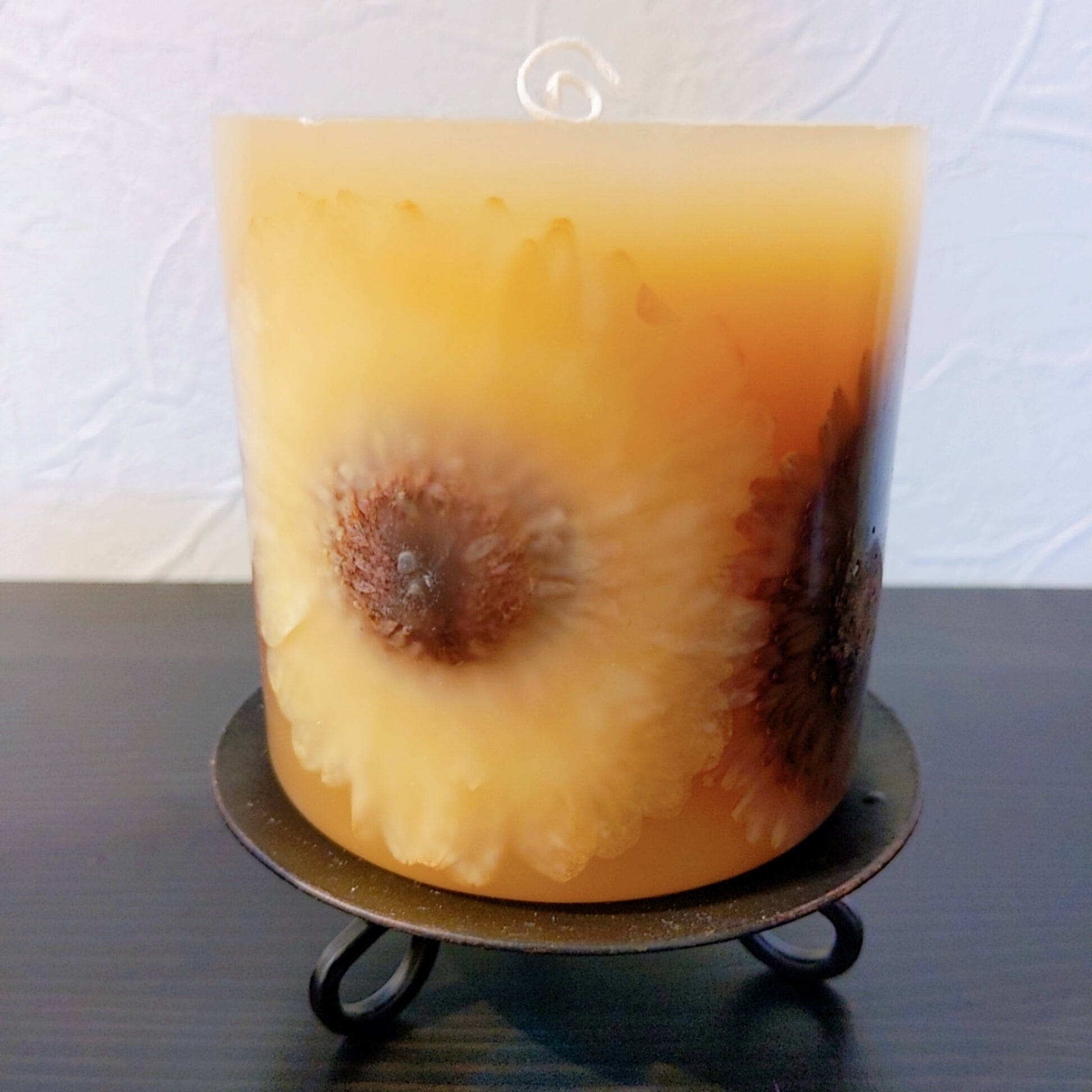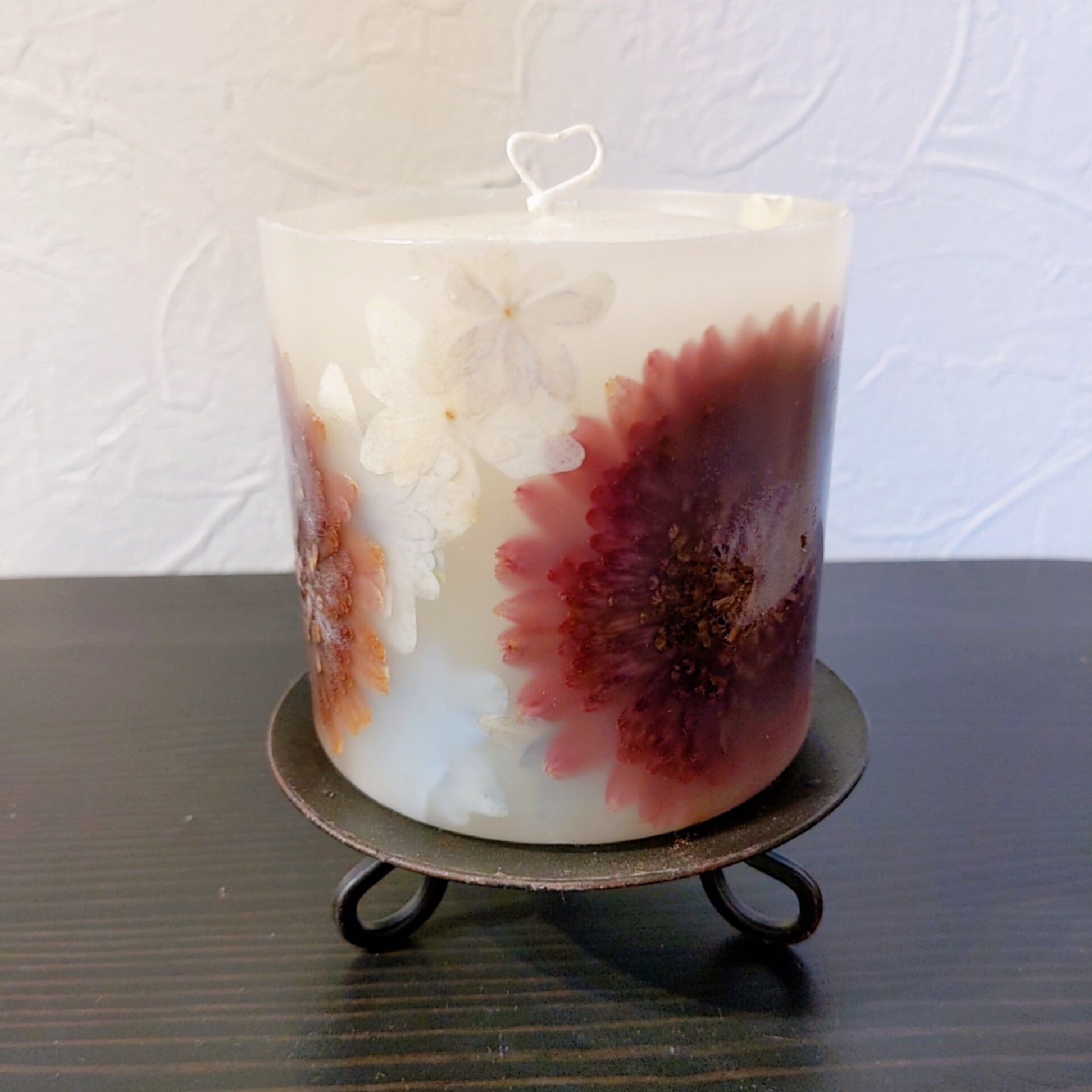 地元糸島の彩り豊かなお花を押し花やドライフラワーにして、キャンドルにデザインしました。