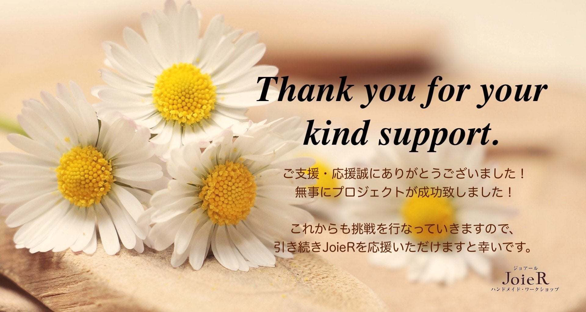 2021/01/31 13:15お花とキャンドルのハンドメイドギフト店、JoieRの田中です。本日プロジェクト期間が終了し、無事に成功致しました!皆様からのご支援、誠にありがとうございました。リターンは本日より順次制作に入り、皆様にお届けいたします。暖かいご支援にお応えできるように、心を込めて精一杯お作りいたします。支援者様には後日、改めてメールにてご連絡させていただきます。ジョアールでは今回のクラウドファンディングで多くの気づきと学びを得ることができました。ロスフラワー削減への取り組み、お花の新しい楽しみ方の可能性など、プロジェクトを進める中で新たな発見もありました。今回の成功体験をスタートとして、こらからも取り組みを大きく広げ、引き続き全国から応援していただけるこのチャレンジを続けていきます。今後の活動報告は、ジョアール店舗サイトブログ: https://joier.jp/blog/インスタグラム:https://www.instagram.com/_joier_/または、オンラインショップ マリージョア サイトブログ:https://marriejoier.com/blogs/blogインスタグラム:https://www.instagram.com/marriejoier/にて共有していきます。最後となりましたが、皆様、暖かいご支援をいただきありがとうございました。福岡県糸島市にいらっしゃった際には、ぜひ店舗にお立ち寄りください。このプロジェクトの舞台裏話や苦労話も織り交ぜながら精一杯おもてなし、歓迎させていただきます。コロナの収束までもう一踏ん張りです。一緒に乗り越えて参りましょう! もっと見る