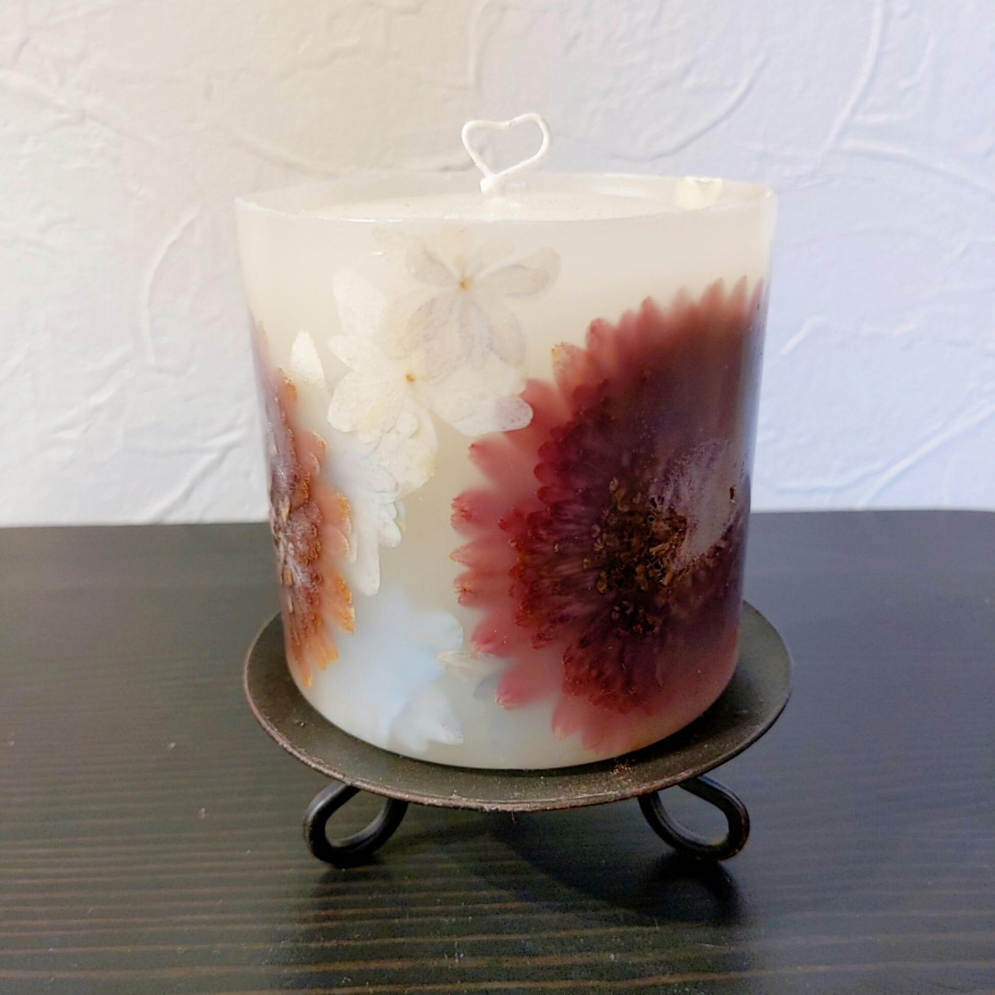 インテリアでも、火を灯しても、2度お花を楽しめるキャンドルになっています。