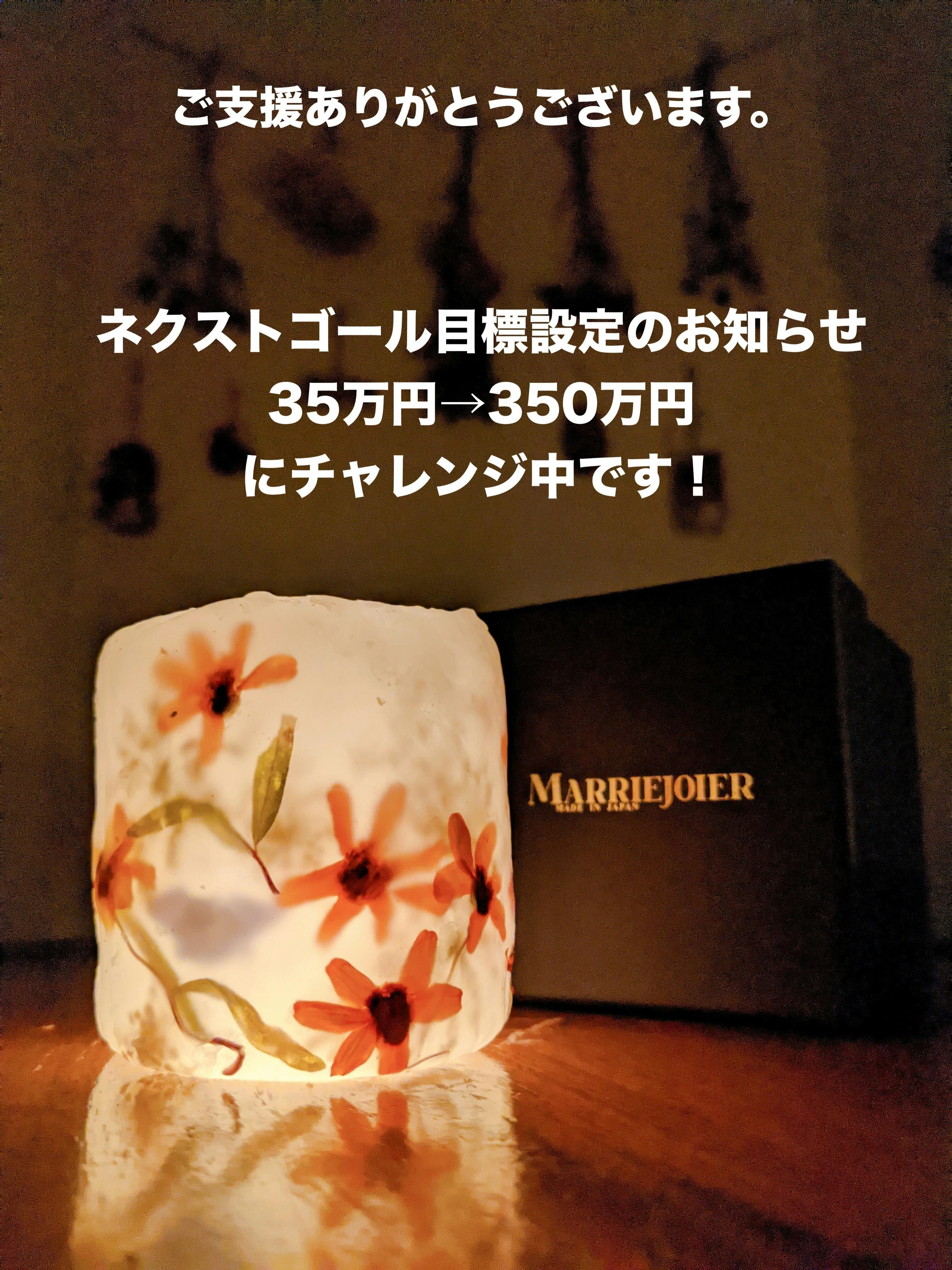 お花のキャンドルの全国販売のため、ウェブサイト構築費用の一部に充てさせていただく目標が
