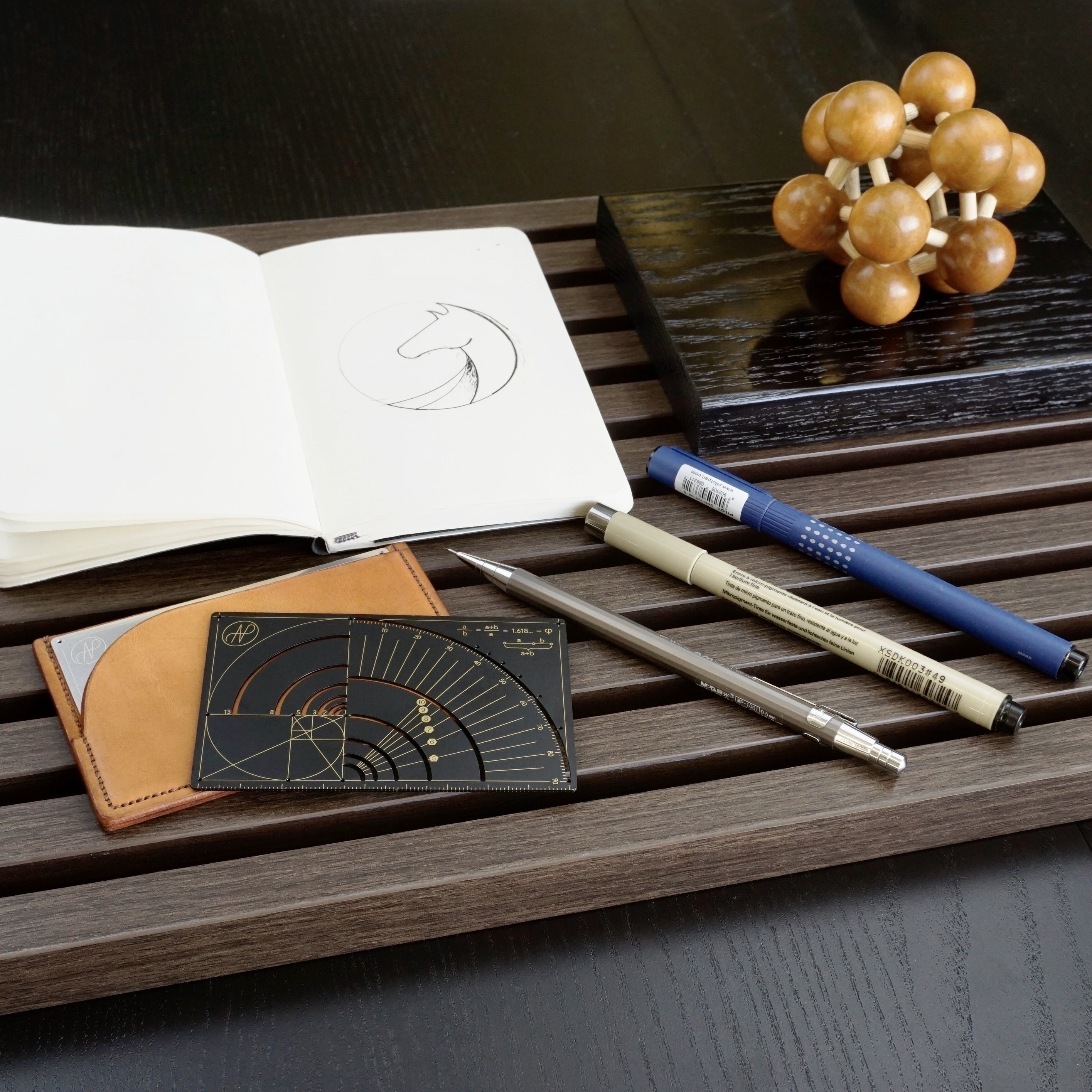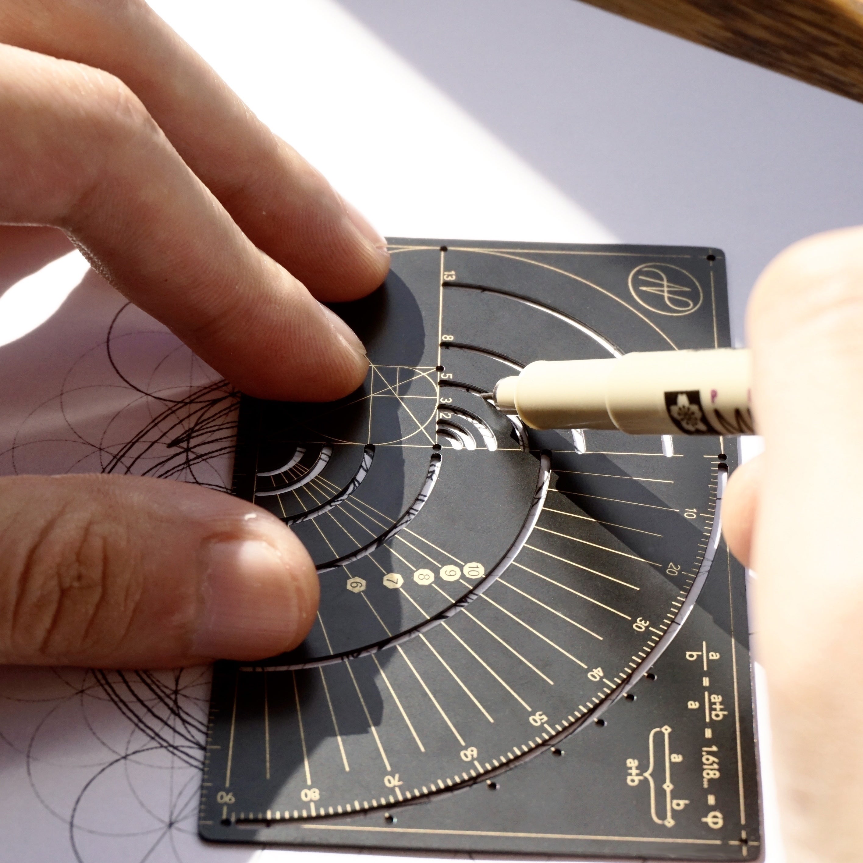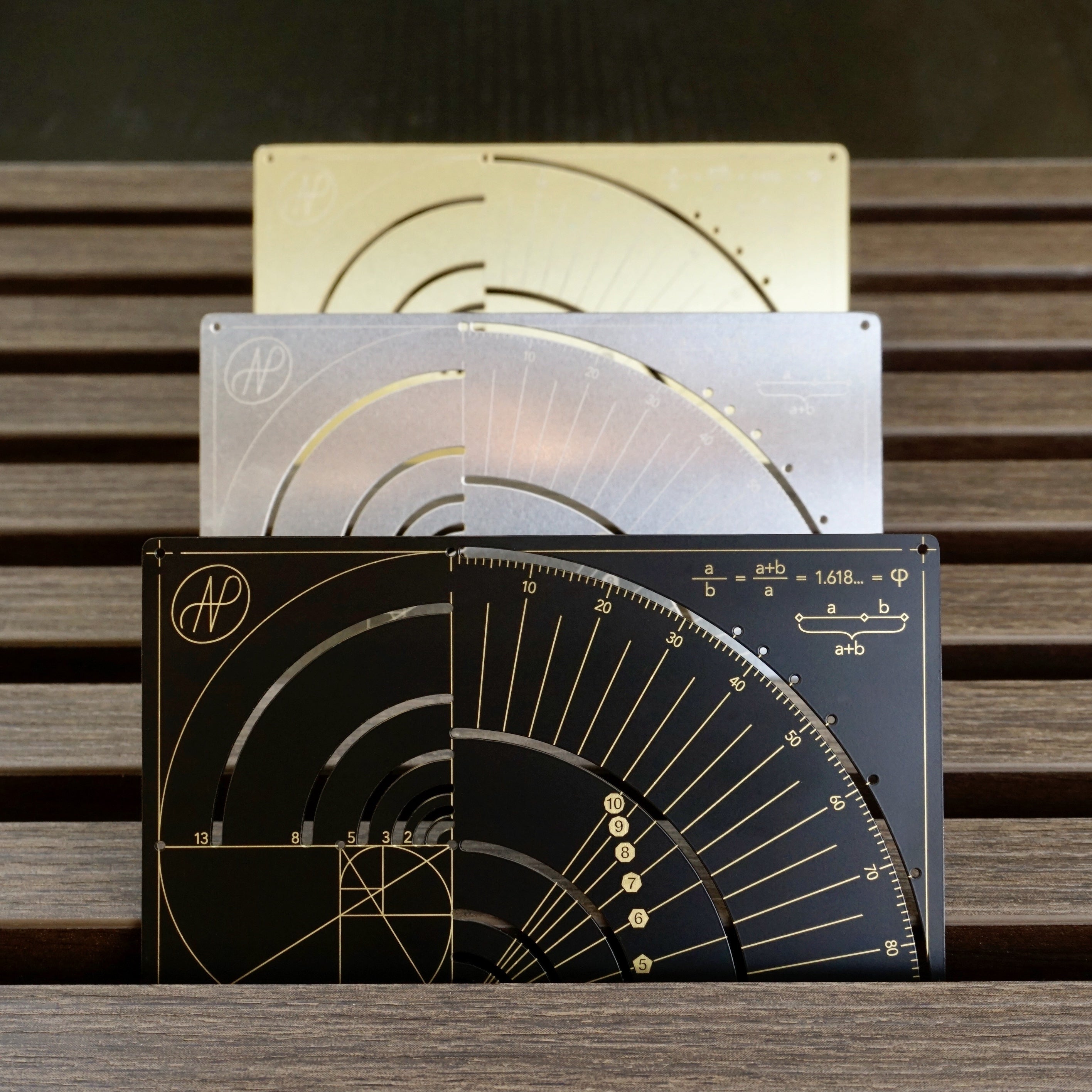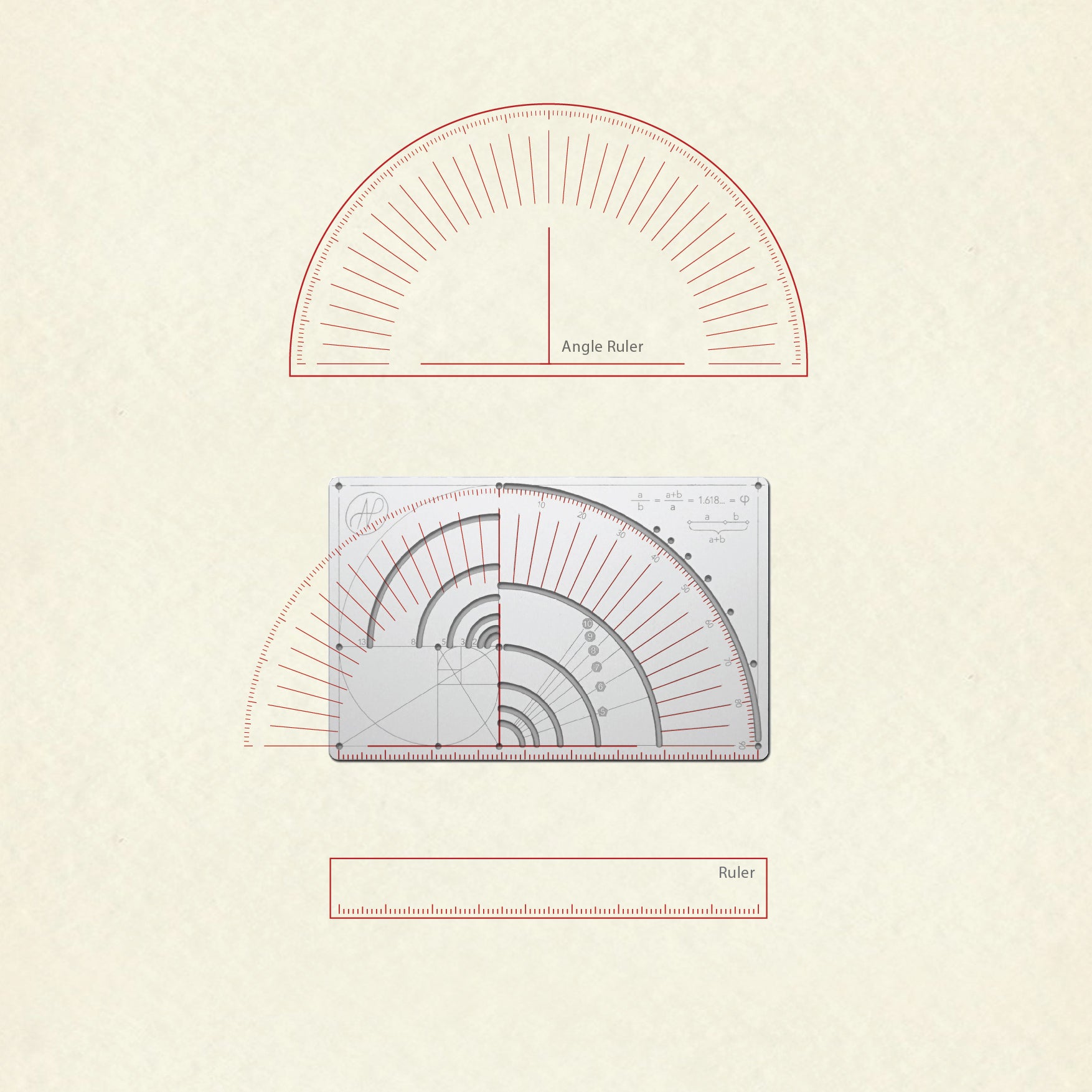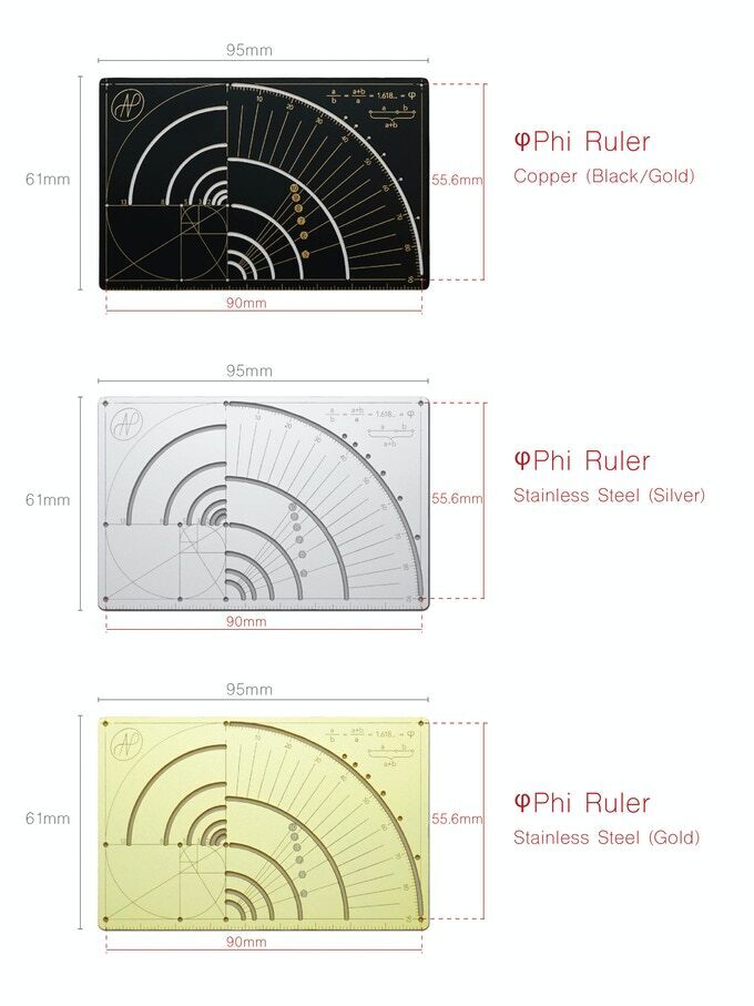 Phi Rulerは黄金比を簡単に表現できるように設計しているだけでなく、あらゆる文房具の機能も備えています。定規、コンパス、分度器の機能をカードサイズに凝縮。オールインワンのマストアイテムとなるでしょう!