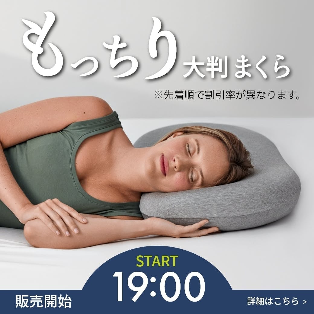 仰向け、うつ伏せ、横向き寝など、あらゆる睡眠スタイルにフィットするもっちり大判まくら!