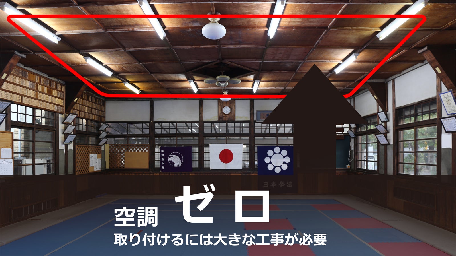 この広い道場・・・・空調がゼロ