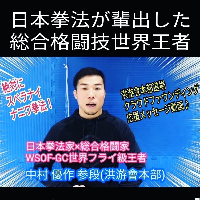 総合格闘技の世界チャンピオンであり、RIZINでも熱闘を繰り広げている中村優作選手が、阿倍野武道館・洪游會本部道場クラウドファウンディングへの応援メッセージ動画をくれました!