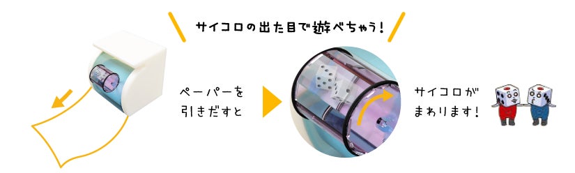 トイレットペーパーを引き出す時に軽快にサイコロがコロコロと転がり、スパッとペーパーを切った時にサイコロの目が止まり、簡単に楽しめるものを!そんな思いで開発しました。