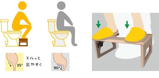 洋式便器の前に置くだけで簡単に使えて、足膝の位置が高くなりますと、腸が排便しやすい形状になり、スムーズな排便をサポート!