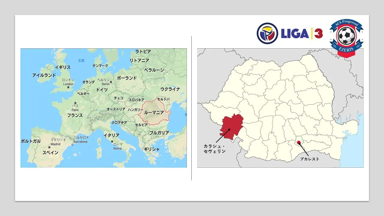 ACS Progresul Ezeris(エゼリシュ)は東欧ルーマニア、カラシュ・セヴェリン県の人口1400人ほどの小さな村エゼリシュを拠点とするサッカーチームです。首都ブカレストからは電車で10時間程離れた場所にあります。ルーマニアの全国リーグである3部(リーガ3)に所属しています。