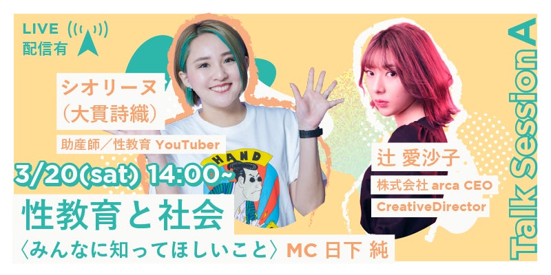 助産師/性教育 YouTuberであるシオリーヌさんと、社会派クリエイティブを掲げ、様々な問題について挑戦されている辻 愛沙子さんのセッションが実現します! リアルな性教育への取り組みと、社会課題について。私たちはどのように情報をとって選択していくのか?優しくて力強いメッセージが発信されます!