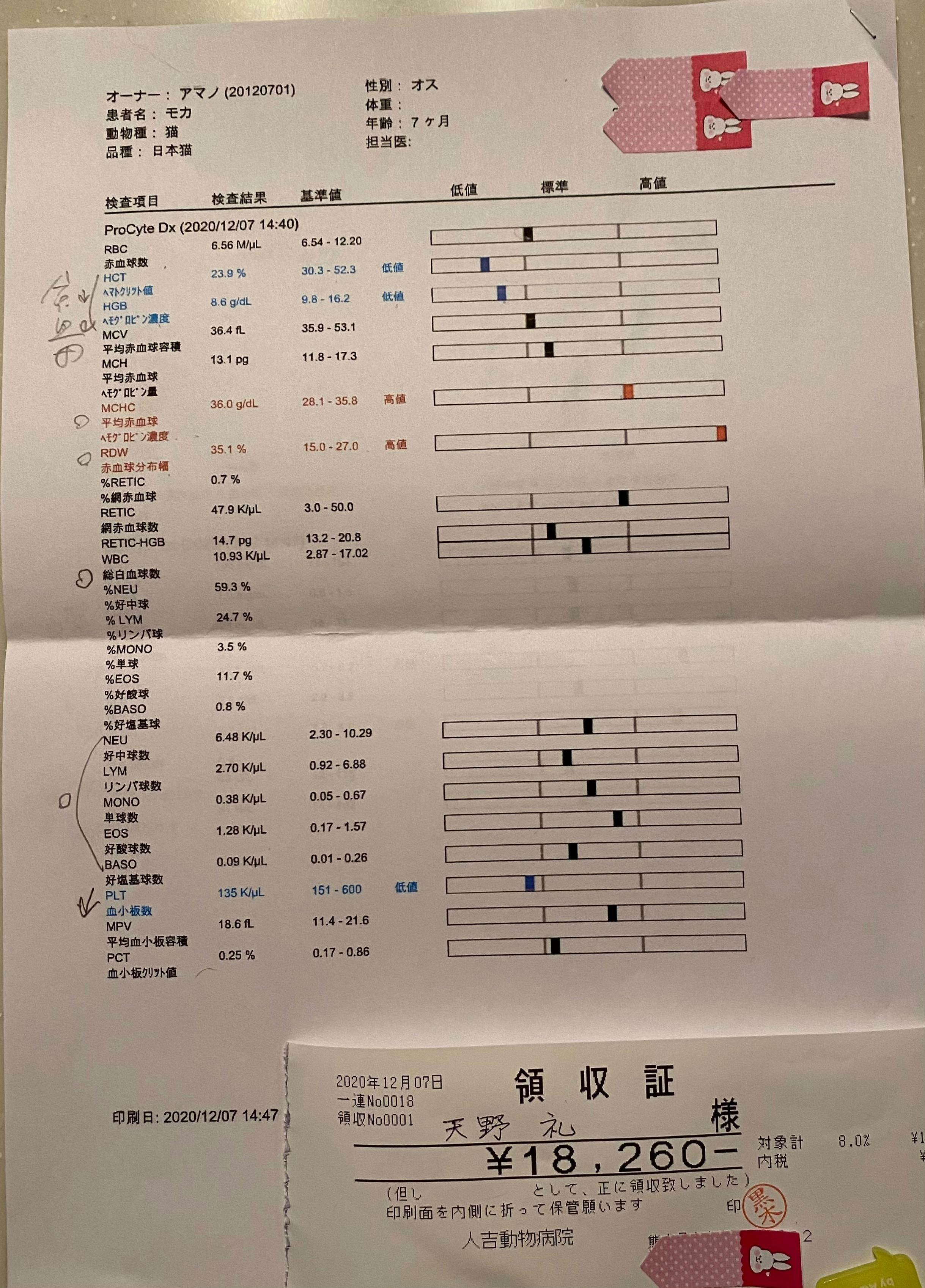 MUTIAN投薬開始より2週間後の血液検査に連れて行ってきました。