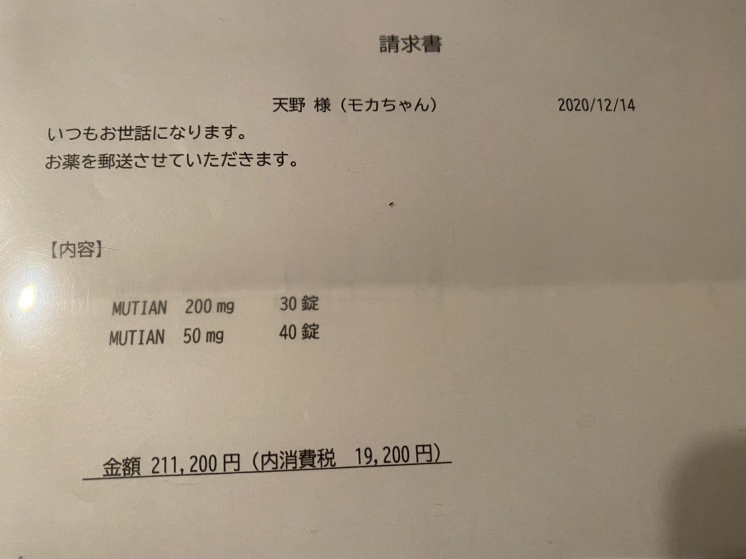 30日分を協力病院から送ってもらい、本日届きました。初回に購入したものが、あと7日分ありますが、切れる事が大問題なので早めに送ってくださってます。まだ、モカッチの体重が2500gないので、MUTIANは1回250mgですが、2500gを超えたら300mgになります。そのため、50mgのカプセルを多めに送ってくださっています。