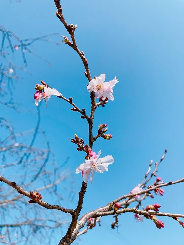 その陽気に誘われて桜の花がちらほらと…。