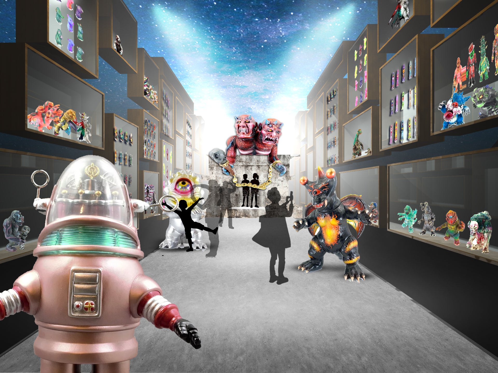 2021/02/01 01:58こんにちは。シカルナ・工房です。ご支援ありがとうこざいます。プロジェクトの公開後に、また緊急事態宣言が出され、厳しい状況が続いていますが、公開から約1か月が経過しましたので、進捗についてご報告させて頂きたいと思います。【博物館内のレイアウト】少しずつですが、館内のレイアウトとイメージが固まってきました。◆テーマゾーン天井を高く設け、宇宙空間をイメージ。通路奥の高い位置に巨大なキャラクターを配置し、それまでの通路の両側にブリキやセルロイドの玩具からソフビ誕生のヒストリーを展示します。音響や照明にも幻想的な工夫をこらし、まるで宇宙船に乗ったような…感覚を抱いて頂ければと考えています。◆展示スペースまず、皆さんに見て楽しんで頂きたい展示スペースについてはテーマにより2つに分けました。A. シカルナ・工房オリジナルソフビゾーンB. キャラクター等のソフビゾーンそれぞれの個性を表現できるような演出と定期的に展示物を入れ替えることで、何度来ても楽しんで頂けるようにしたいと考えております。◆ソフビ神社展示ゾーンの奥には…「ソフビ神社」が佇んでいます。ソフビ神社のおみくじを引くと…おたのしみが…。まだまだ…未確定な部分も多いですが、進捗についてはこれからも、少しずつご報告させて頂きます。博物館設立予定の初夏にはコロナの収束を信じ、頑張ってまいりたいと思います。引き続きご支援、宜しくお願い致します。 もっと見る