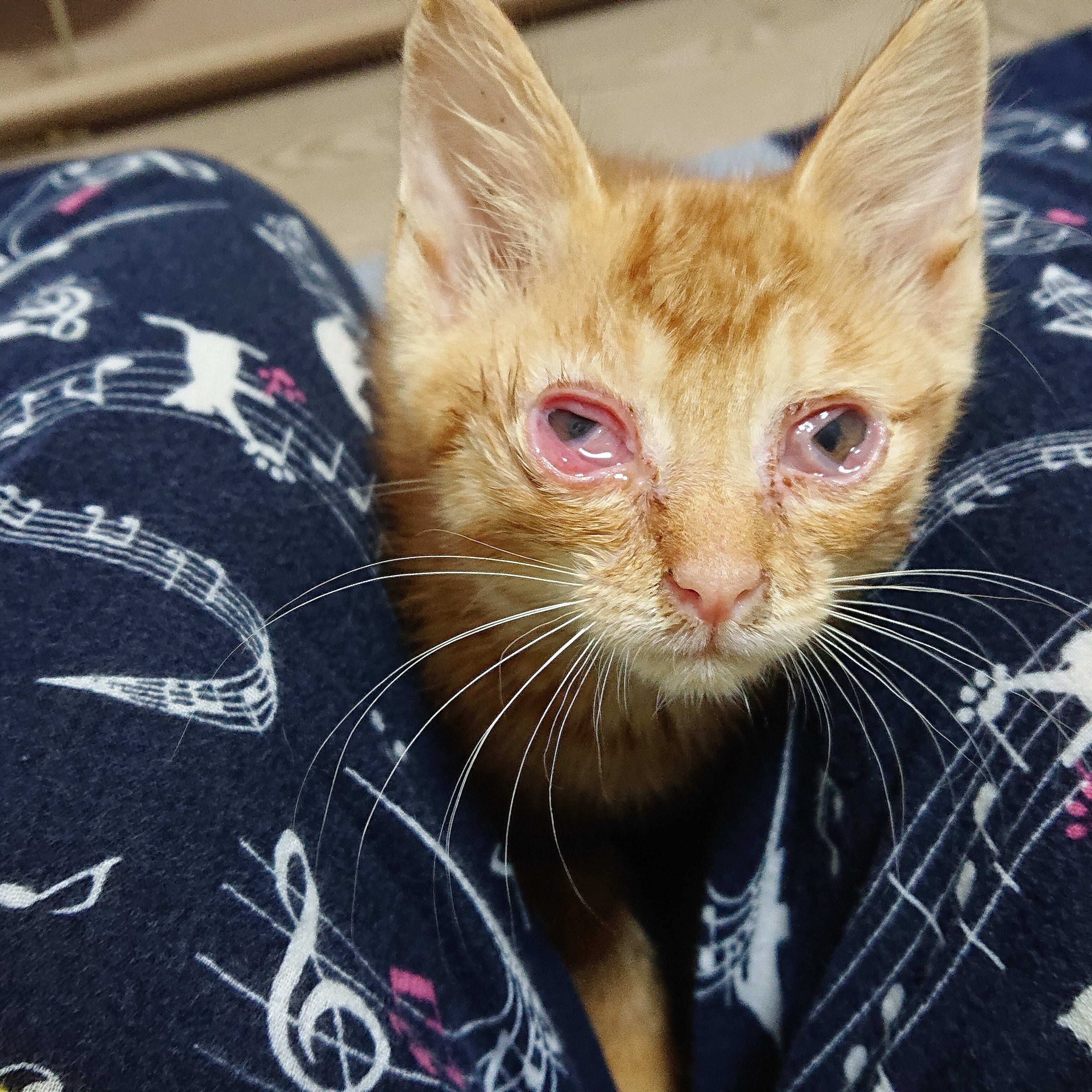 ネロ君はかなりの風邪をひいていて、とにかく結膜炎がひどい……