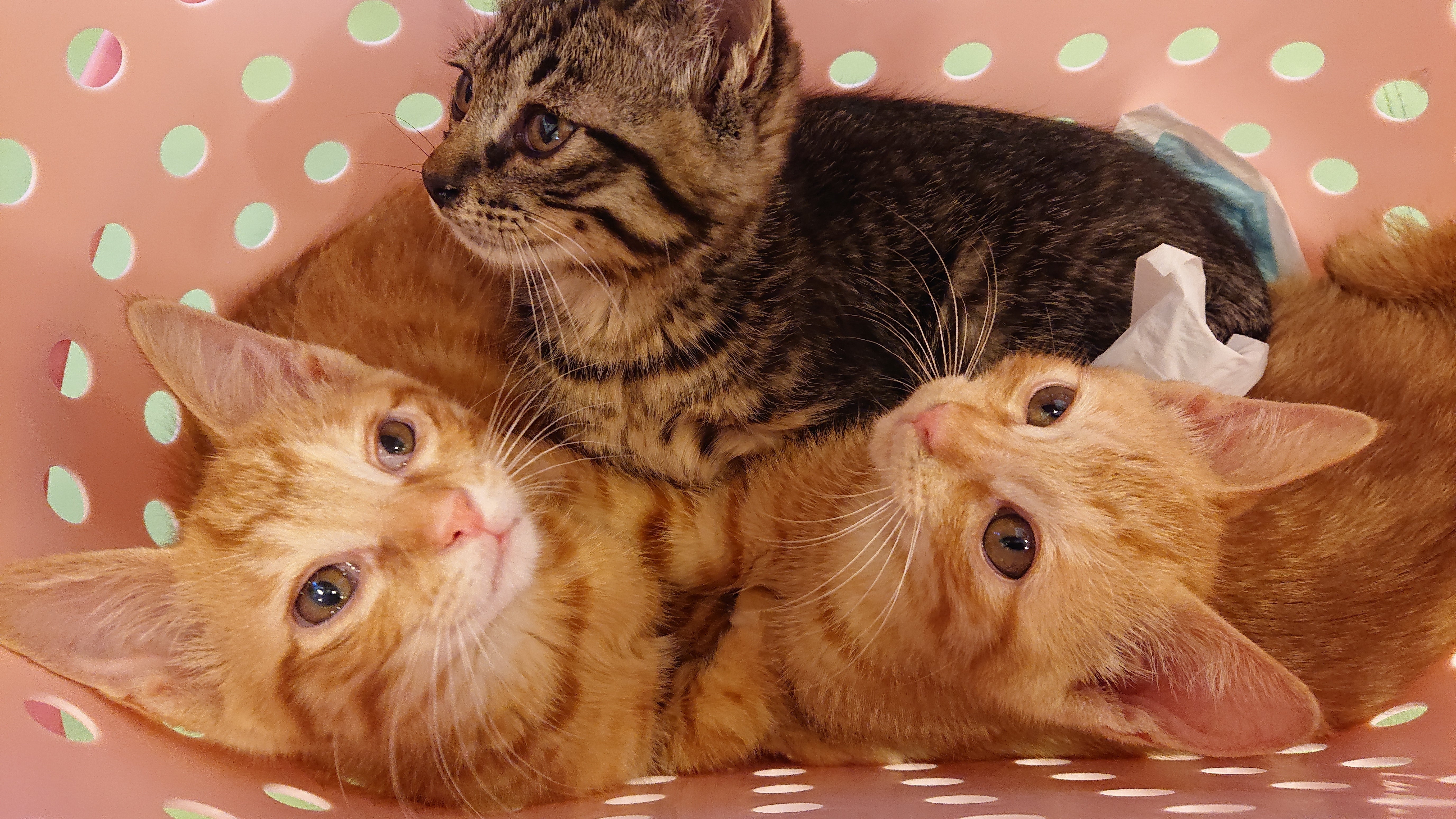 保護時から風邪をひいていて、ずっと内服と点眼を継続してきましたが、まだあと一歩治りきらず、結膜炎が残っていたりくしゃみをしている子もいるので病院に行って来ました。